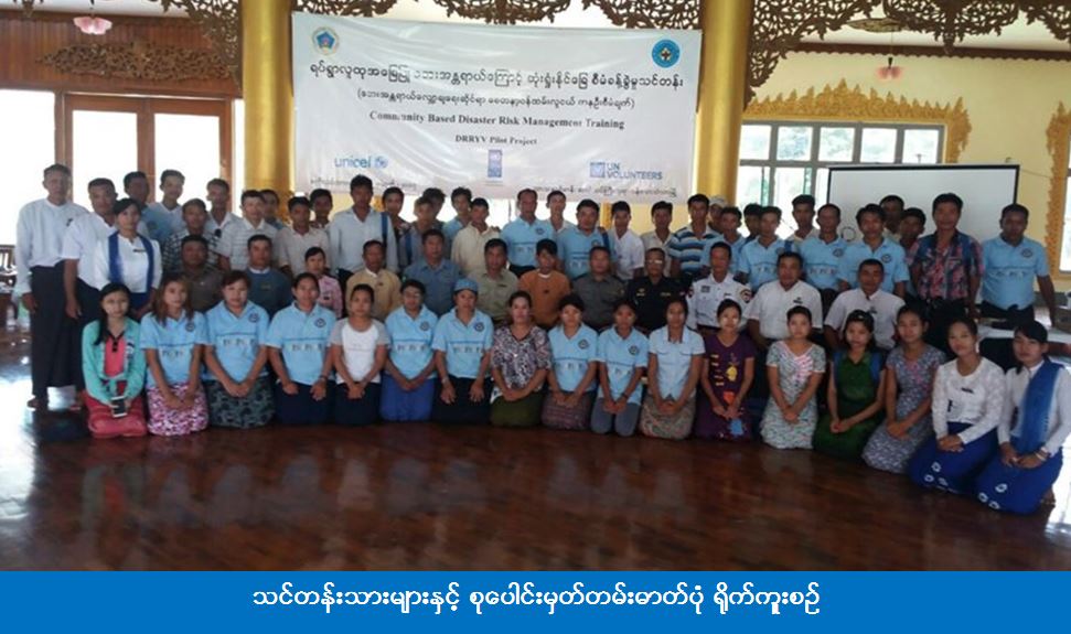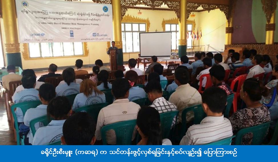ကယ်ဆယ်ရေးနှင့် ပြန်လည်နေရာချထားရေးဦးစီးဌာနနှင့် UNV (UN Volunteers) တို့ပူးပေါင်း၍ (၂၅-၉-၂၀၁၇) ရက်နေ့၊ (၀၉းဝဝ) နာရီချိန်တွင် ဟင်္သာတမြို့နယ်၊ သာသနာ့ဗိမာန်၊ ဆယ်ထပ်ကြီးဘုရားဝန်း၌ သဘာဝဘေးအန္တရာယ်လျော့ချရေးဆိုင်ရာ စေတနာ့ဝန်ထမ်းလူငယ်ကနဦးစီမံချက် “ရပ်ရွာလူထုအခြေပြု ဘေးအန္တရာယ်ကြောင့် ဆုံးရှုံးနိုင်ခြေ စီမံခန့်ခွဲမှုသင်တန်း” ဖွင့်ပွဲအခမ်းအနားကို ပြုလုပ်ခဲ့ရာ တိုင်းဒေသကြီးလွှတ်တော်ကိုယ်စားလှယ်၊ မြို့နယ်အုပ်ချုပ်ရေးမှူး၊ ဟင်္သာခရိုင်ဦးစီးမှူးရုံး(ကဆရ) မှ ခရိုင်ဦးစီးမှူးနှင့် ဝန်ထမ်းများ၊ မြို့နယ်အဆင့် ဌာနဆိုင်ရာ ပုဂ္ဂိုလ်များနှင့် စေတနာ့ဝန်ထမ်းလူငယ် (၅၅) ဦးတို့ သင်တန်းဖွင့်ပွဲအခမ်းအနားသို့ တက်ရောက်ခဲ့ကြပါသည်။ အဆိုပါသင်တန်းအား (၂၅-၉-၂၀၁၇) မှ (၂၉-၅-၂၀၁၇) နေ့ထိ (၅) ရက်ကြာ ဖွင့်လှစ်မည်ဖြစ်ကြောင်း သိရှိရပါသည်။