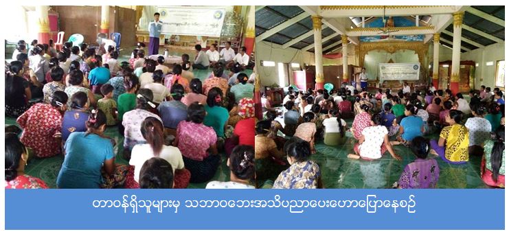 ကယ်ဆယ်ရေးနှင့်ပြန်လည်နေရာချထားရေးဦးစီးဌာန၊ မအူပင်ခရိုင်ဦးစီးမှူးရုံးမှတာဝန်ရှိသူများသည် (၂၇-၉-၂၀၁၇) ရက်နေ့တွင် မအူပင်မြို့နယ်၊ အလန်းကျေးရွာအုပ်စု၊ အလန်းကျေးရွာ၌ ပြည်သုလူထု (၁၅၀) ဦးခန့်အား သဘာဝဘေးအသိပညာပေးဟောပြောပွဲပြုလုပ်ခဲ့ပြီး လက်ကမ်းစာစောင်များနှင့် မိုးကြိုးဘေး ဗီနိုင်းပိုစတာများဖြန့်ဝေပေးခဲ့ကြောင်း သတင်းရရှိပါသည်။Source: မအူပင်ခရိုင်ဦးစီးမှူးရုံး(ကဆရ)