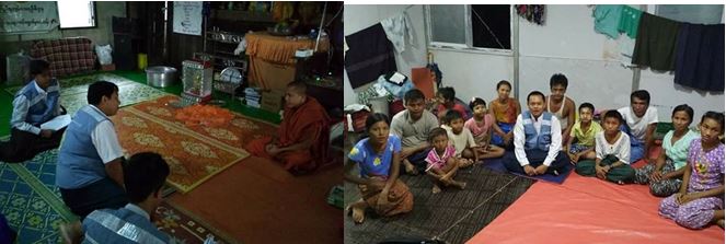 (၂၉-၉-၂၀၁၇) ရက်နေ့တွင် လူမှုဝန်ထမ်း၊ ကယ်ဆယ်ရေးနှင့် ပြန်လည်နေရာချထားရေးဝန်ကြီးဌာနမှ ညွှန်ကြားရေးမှူးဦးဆောင်သော အဖွဲ့ဝင်များသည် ရခိုင်ပြည်နယ်မြောက်ပိုင်း၊ အကြမ်းဖက်ဖြစ်စဉ်များကြောင့် စစ်တွေမြို့ပါ်ရှိ ရတနာ့ဗိမ္မာန် ဘုန်းတော်ကြီးကျောင်းသို့ ရောက်ရှိခိုလှုံလျက်ရှိသော တိုင်းရင်းသားပြည်သူမျာအား ကယ်ဆယ်ရေးစခန်းအတွင်းရောက်ရှိနေ ခိုက် တိမ်းရှောင်ပြည်သူ များလတ်တလောနေထိုင်မှုနှင့် စားဝတ်နေရေး တို့ကိုသွားရောက်ကြည့်ရှုပြီး ပြည်သူများကို အားပေး နှစ်သိမ့် ဆွေးနွေးစကားပြောကြားခဲ့ကြောင်း သိရှိရပါသည်။