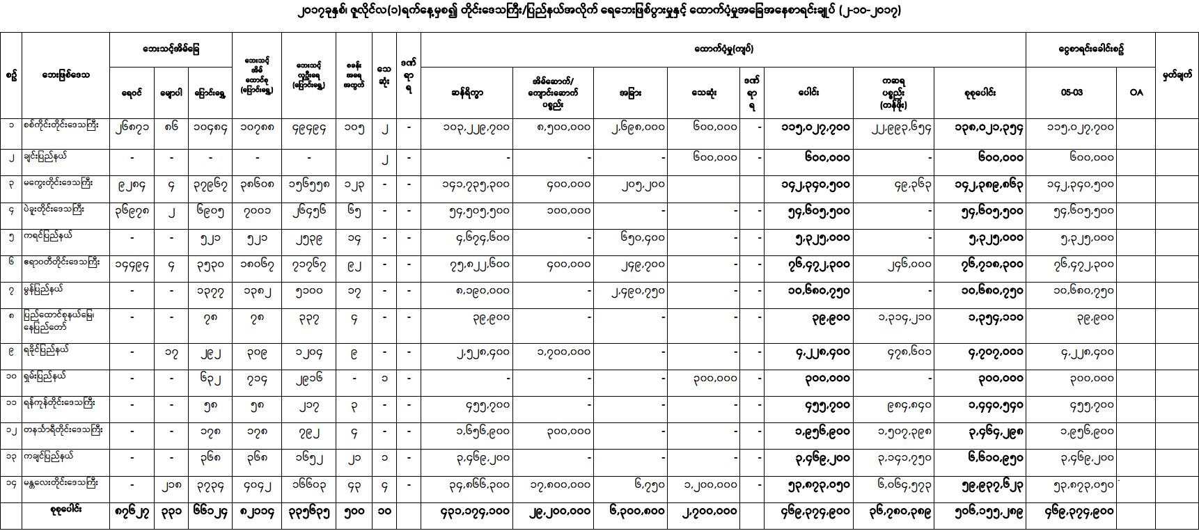 ၂၀၁၇ ခုနှစ်၊ ဇူလိုင်လ (၁) ရက်နေ့မှ အောက်တိုဘာလ (၂) ရက်နေ့အထိ တိုင်းဒေသကြီး/ပြည်နယ်အလိုက် ရေဘေးဖြစ်ပွားမှုနှင့် ထောက်ပံ့မှုအခြေအနေ စာရင်းချုပ်