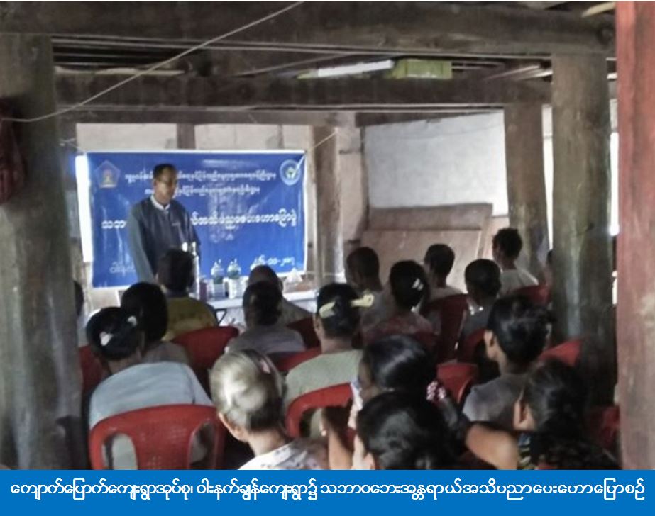 (၁၆-၁၀-၂၀၁၇) ရက်နေ့၊ (၁၃းဝဝ) နာရီအချိန်တွင် ကျောက်ဖြူခရိုင်ဦးစီးမှူးရုံး (ကဆရ) မှ တာဝန်ရှိသူများသည် ကျောက်ပြောက်ကျေးရွာအုပ်စု၊ ဝါးနက်ချွန်ကျေးရွာဘုန်းတော်ကြီးကျောင်း၌ သဘာဝဘေးအန္တရာယ်အသိပညာပေးဟောပြောပွဲ ကျင်းပပြုလုပ်ခဲ့ရာ အဆိုပါဟောပြောပွဲသို့ ကျေးရွာသူ၊ ကျေးရွာသား (၇၅) ဦး တက်ရောက်ခဲ့ကြောင်း သိရှိရပါသည်။