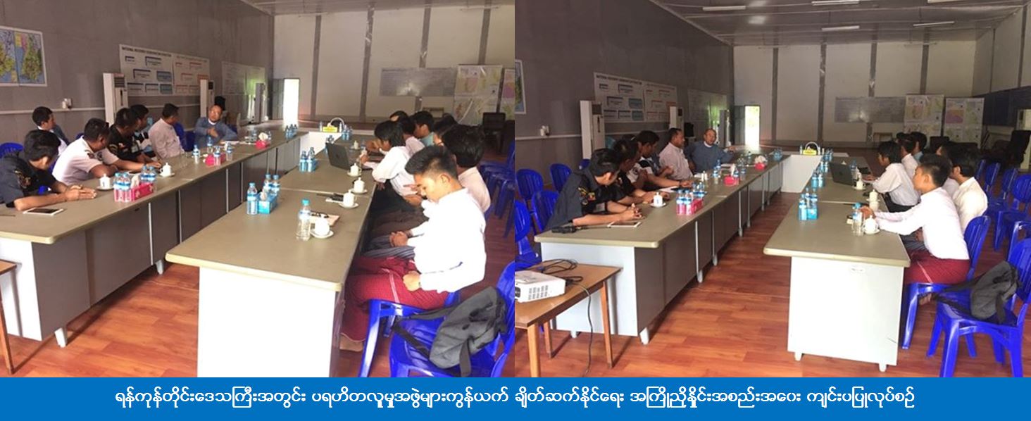 ကယ်ဆယ်ရေးနှင့် ပြန်လည်နေရာချထားရေးဦးစီးဌာန၊ ဒုတိယညွှန်ကြားရေးမှူးချုပ် ဦးသန်းထွဋ်ဆွေသည် (၂၄-၁၀-၂၀၁၇) ရက်နေ့တွင် သဘာဝဘေးအန္တရာယ်ဆိုင်ရာစီမံခန့်ခွဲမှုဗဟိုဌာန (ရန်ကုန်ရုံးခွဲ) ၌ လူငယ်ပရဟိတအဖွဲ့များ၊ မြန်မာနိုင်ငံလူမှုကူညီရေးအဖွဲ့တို့နှင့် တွေ့ဆုံခဲ့ပြီး ရန်ကုန်တိုင်းဒေသကြီးအတွင်း “ပရဟိတလူမှုအဖွဲ့များကွန်ယက် ချိတ်ဆက်နိုင်ရေး အကြိုညှိနှိုင်းအစည်းအဝေး” ကျင်းပပြုလုပ်ခဲ့ကြောင်း သိရှိရပါသည်။