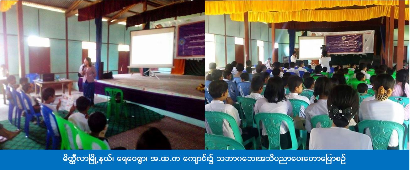 မိတ္ထီလာခရိုင်ဦးစီးမှူးရုံး (ကဆရ) မှ တာဝန်ရှိသူများသည် (၂၄-၁၀-၂၀၁၇) ရက်နေ့တွင် မိတ္ထီလာမြို့နယ်၊ ရေဝေရွာ၊ အ.ထ.က ကျောင်း၌ ကျောင်းသူ၊ ကျောင်းသား (၁၂၀) ဦးခန့်အား သဘာဝဘေးအန္တရာယ်ဆိုင်ရာအသိပညာပေးဟောပြောခြင်းဆောင်ရွက်ခဲ့ကြောင်း သိရှိရပါသည်။