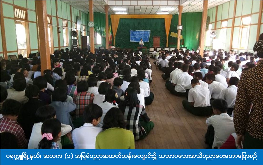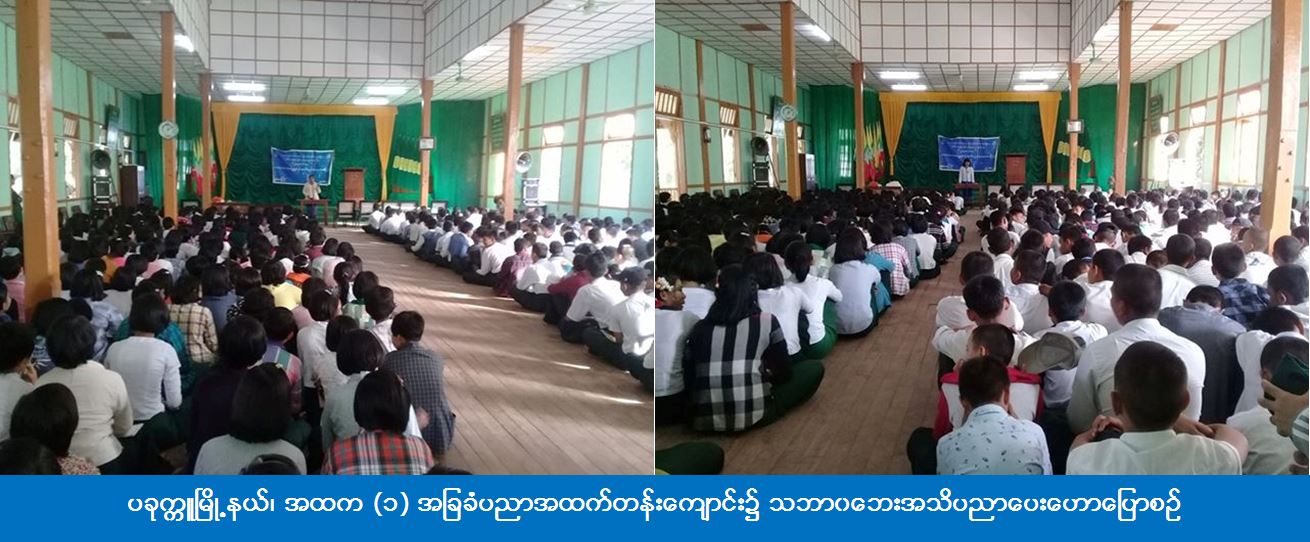 ကယ်ဆယ်ရေးနှင့် ပြန်လည်နေရာချထားရေးဦးစီးဌာန၊ ပခုက္ကူခရိုင်ဦးစီးမှူးရုံးမှ တာဝန်ရှိသူများသည် (၂၅-၁၀-၂၀၁၇) ရက်နေ့တွင် ပခုက္ကူမြို့နယ်၊ အထက (၁) အခြခံပညာအထက်တန်းကျောင်း၌ ကျောင်းသား/သူ (၆၂၅) ဦးတို့အား သဘာဝဘေးအန္တရာယ်အသိပညာပေးဟောပြောပွဲကျင်းပပြုလုပ်ခဲ့ပြီး လက်ကမ်းစာစောင်များနှင့် နံရံကပ်ပိုစတာများကို ကျောင်းအုပ်ဆရာကြီးသို့ ပေးအပ်ခဲ့ပါကြောင်း သိရှိရပါသည်။