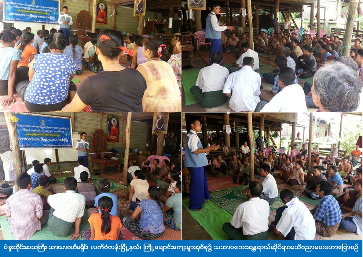 (၂၅-၁၀-၂၀၁၇) ရက်နေ့တွင် ပြည်ခရိုင်ဦးစီးမှူးရုံး (ကဆရ) မှ တာဝန်ရှိသူများသည် ပဲခူးတိုင်းဒေသကြီး၊ သာယာဝတီခရိုင်၊ လက်ပံတန်းမြို့နယ်၊ ကြို့ချောင်းကျေးရွာအုပ်စု၌ “သဘာဝဘေးအန္တရာယ်ဆိုင်ရာအသိပညာပေးဟောပြောပွဲ” ကျင်းပပြုလုပ်ခဲ့ရာ ကျေးရွာသူ/သား(၁၀၀) ဦး တက်ရောက်ခဲ့ကြပါသည်။ အဆိုပါတက်ရောက်လာသူများအား တာဝန်ရှိသူများက မီးဘေးနှင့် ငလျင်ဘေး ဗီနိုင်းပိုစတာများ ပေးအပ်ခဲ့ပြီး ခေါက်ဆွဲခြောက်ထုပ်များလည်း ဝေငှပေးခဲ့ကြောင်း သိရှိရပါသည်။