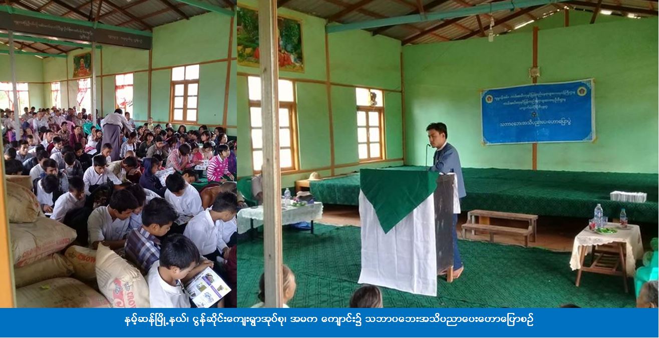 (၂၅-၁၀-၂၀၁၇) ရက်နေ့၊ (၁၃:၀၀ ~ ၁၅:၀၀) နာရီအချိန်တွင် နမ့်ဆန်မြို့နယ်၊ ငွန်ဆိုင်းကျေးရွာအုပ်စု၊ အမက ကျောင်း၌ သဘာဝဘေးအသိပညာပေးဟောပြောပွဲ ကျင်းပပြုလုပ်ရာ တာဝန်ရှိသူများက ငလျင်ဘေး၊ မိုးကြိုးဘေး၊ လေဘေး၊ မြေပြိုဘေးနှင့် မီးဘေး အစရှိသည့် ဘေးအန္တရာယ်များ၏ ဘေးမဖြစ်ပွားမီ၊ ဖြစ်ပွားစဉ်၊ ဖြစ်ပွားပြီးနောက် ဆောင်ရန် ရှောင်ရန်နှင့် လိုက်နာဆောင်ရွက်ရမည့်အချက်များအား အသိပညာပေးဟောပြောခဲ့ပြီး DAN MOBILE APP အကြောင်းရှင်းလင်းဖြန့်ဝေခဲ့ကာ တက်ရောက်သူများထံ ဘေး(၆)မျိုးပါ လက်ကမ်းစာစောင်များ ဖြန့်ဝေပေးခဲ့ပါသည်။ ဟောပြောပွဲသို့ အလယ်တန်း နှင့်အထက်တန်း ကျောင်းသား၊ ကျောင်းသူ စုစုပေါင်း (၁၅၀) ဦးတို့ တက်ရောက်ခဲ့ကြောင်း သိရှိရပါသည်။