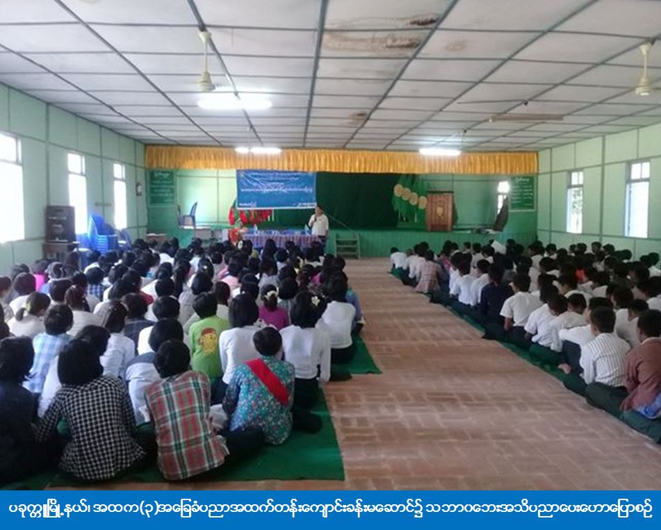 ကယ်ဆယ်ရေးနှင့် ပြန်လည်နေရာချထားရေးဦးစီးဌာန၊ ပခုက္ကူခရိုင်ဦးစီးမှူးရုံးမှ တာဝန်ရှိသူများသည် (၂၇-၁၀-၂၀၁၇) ရက်နေ့၊ နံနက် (၀၇း၃၀~၀၉းဝဝ) နာရီအချိန်တွင် ပခုက္ကူမြို့နယ်၊ အထက(၃)အခြေခံပညာအထက်တန်းကျောင်းခန်းမဆောင်၌ သဘာဝဘေးအသိပညာပေးဟောပြောပွဲ ပြုလုပ်ခဲ့ရာ တာဝန်ရှိသူများက နဝမတန်းမှ ကျောင်းသား/သူ (၃၀၅) ဦးအား မီးဘေး၊ ရေဘေး၊ ငလျင်၊မုန်တိုင်း၊ မြေပြိုခြင်း၊ ဆူနာမီနှင့် မိုးကြိုးဘေးများ၏ ဆောင်ရန်၊ ရှောင်ရန်အချက်များအား အသိပညာပေးဟောပြောပွဲခဲ့ပြီး လက်ကမ်းစာစောင်များနှင့် နံရံကပ်ပိုစတာများကို ကျောင်းအုပ်ဆရာမကြီးသို့ ပေးအပ်ခဲ့ပါကြောင်း သိရှိရပါသည်။