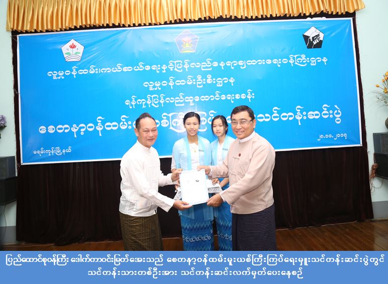 လူမှုဝန်ထမ်း၊ ကယ်ဆယ်ရေးနှင့် ပြန်လည်နေရာချထားရေးဝန်ကြီးဌာန၊ လူမှုဝန်ထမ်း ဦးစီးဌာန၏ ဦးဆောင်မှုဖြင့် ဖွင့်လှစ်သော စေတနာ့ဝန်ထမ်း မူးယစ်ကြီးကြပ်ရေးမှူး သင်တန်း ဆင်းပွဲကို ယနေ့နံနက်ပိုင်းတွင် ရန်ကုန်မြို့ရှိ ဘိုးဘွားများအား နေ့ပိုင်းစောင့်ရှောက်ရေးဂေဟာ၌ ကျင်းပရာ လူမှုဝန်ထမ်း၊ ကယ်ဆယ်ရေးနှင့် ပြန်လည်နေရာချထားရေးဝန်ကြီးဌာန၊ ပြည်ထောင်စု၀န်ကြီး ဒေါက်တာဝင်းမြတ်အေး တက်ရောက်ပြီး သင်တန်းဆင်းပွဲအမှာစကား ပြောကြားခဲ့ပါသည်။