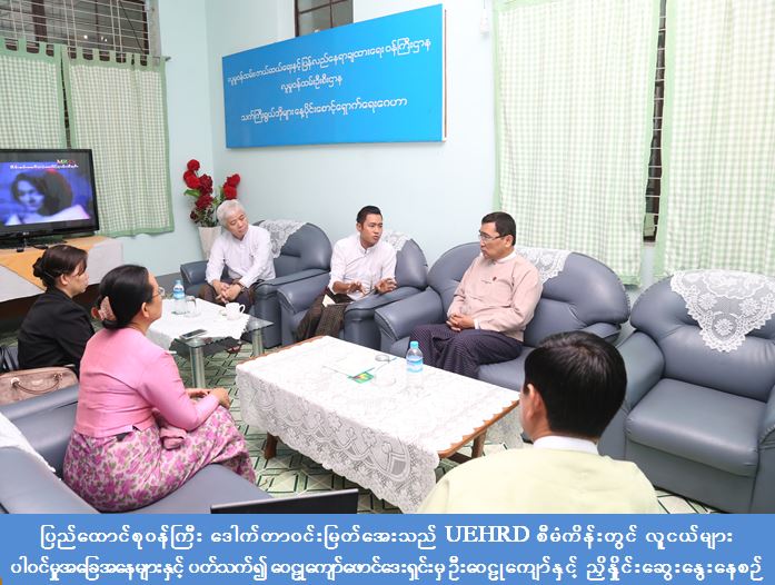 ဆက်လက်၍ ပြည်ထောင်စုဝန်ကြီးသည် UEHRD စီမံကိန်းတွင် လူငယ်များပါဝင်နေမှု အခြေအနေများနှင့် ပတ်သက်၍ ဝေဠုကျော်ဖောင်ဒေးရှင်းမှ ဦးဝေဠုကျော်နှင့် ညှိနှိုင်းဆွေးနွေး ရာတွင် ရခိုင်ပြည်နယ်အတွင်း လူသားချင်းစာနာမှုအကူအညီထောက်ပံ့ပေးရေး၊ ပြန်လည်နေရာချထားရေး၊ ဖွံ့ဖြိုးရေး စီမံကိန်း (UEHRD)၏ ရှေ့ပြေးဆောင်ရွက်မှုများတွင် ဝေဠုကျော် ဖောင်ဒေးရှင်းမှ လူငယ်များပါဝင် ဆောင်ရွက်နိုင်မည့်အခြေအနေ၊ လူငယ်များကို သင်တန်းများ ဖွင့်လှစ်ပို့ချပြီး ကွင်းဆင်းဆောင်ရွက် နိုင်မည့်အခြေအနေများ၊ ရခိုင်ပြည်နယ်ရှိ ပြည်သူများ၏ စားဝတ်နေရေးအတွက် လတ်တလောလိုအပ်ချက် များတွင် လူငယ်များ၏အင်အားဖြင့် ပူးပေါင်း ပါဝင်နိုင်မည့် အခြေအနေ များကိုရင်းနှီးပွင့်လင်းစွာ ဆွေးနွေးခဲ့ကြကြောင်း သတင်းရရှိပါသည်။