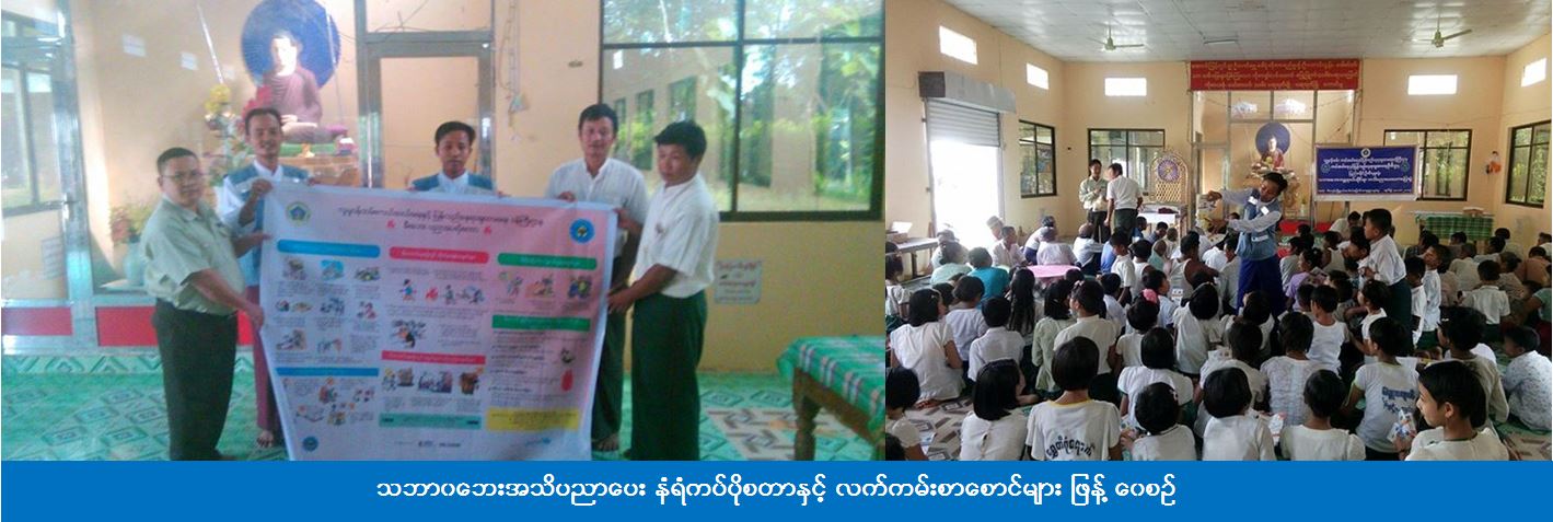 ကယ်ဆယ်ရေးနှင့် ပြန်လည်နေရာချထားရေးဦးစီးဌာန၊ ပြည်ခရိုင်ဦးစီးမှူးရုံးမှ တာဝန်ရှိသူများသည် (၃၀-၁၀-၂၀၁၇) ရက်နေ့တွင် သာယာဝတီခရိုင်၊ ဇီးကုန်းမြို့နယ်၊ စပါယ်မြောင်ကျေးရွာအုပ်စု၌ သဘာဝဘေးအန္တရာယ်ဆိုင်ရာ အသိပညာပေးဟောပြောပွဲ ကျင်းပပြုလုပ်ရာ သဘာဝဘေးအန္တရာယ်နှင့်ပက်သက်သည့် ကြိုတင်ပြင်ဆင်မှုများ၊ ဆောင်ရန် ရှောင်ရန်များအား ဆွေးနွေးဟောပြောပြီး တက်ရောက်လာသည့် ကျေးရွာသူ/သားများနှင့် ကျောင်းသား/သူ (၂၅၀) ဦးထံ လက်ကမ်းစာစောင်များနှင့် ခေါက်ဆွဲခြောက်ထုပ်များ ဝေငှပေးခဲ့ကြောင်း သိရှိရပါသည်။