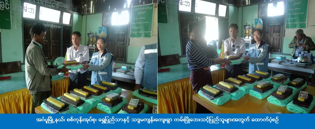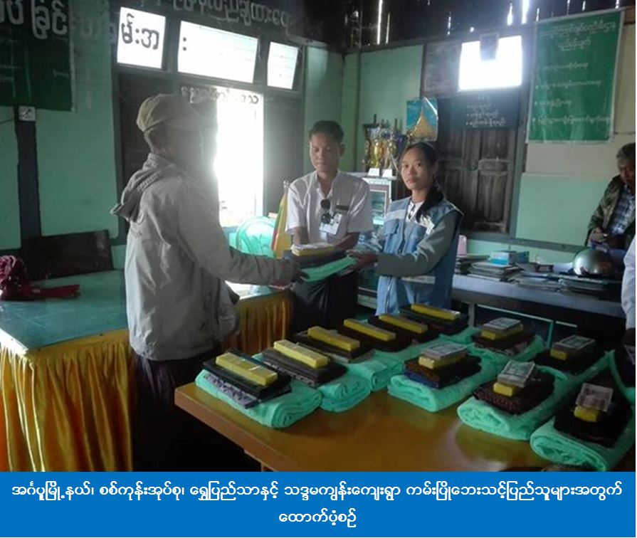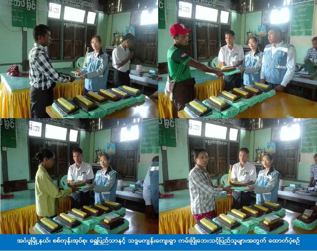အင်္ဂပူမြို့နယ်၊ စစ်ကုန်းအုပ်စု၊ ရွှေပြည်သာနှင့် သဒ္ဒမကျွန်းကျေးရွာ၌ (၂၈-၁၀-၂၀၁၇) ရက်နေ့တွင် ကမ်းပြိုဘေးဖြစ်ပွားမှုကြောင့် အိမ်ခြေ ၁၀ လုံး၊ အိမ်ထောင်စု ၁၀ စု၊ လူဦးရေ ၃၀ ဦးအတွက် ကယ်ဆယ်ရေးပစ္စည်း ၄ မျိုး ၁၀အိမ်ထောင်စာ၊ အိမ်ဆောက်ပစ္စည်းဖိုး (၁၀၀၀၀၀၀) ကျပ်၊ ဆန်ရိက္ခာဖိုး (၆၃၀၀၀) ကျပ်၊ စုစုပေါင်းကယ်ဆယ်ရေးရန်ပုံငွေ (၁၁၄၄၃၀၀) ကျပ်တို့ကို ကယ်ဆယ်ရေးနှင့် ပြန်လည်နေရာချထားရေးဦးစီးဌာန၊ ဟင်္သာတခရိုင်ဦးစီးမှူးရုံးမှ တာဝန်ရှိသူများသည် (၁-၁၁-၂၀၁၇) ရက်နေ့တွင် အင်္ဂပူမြို့နယ်အထွေထွေအုပ်ချုပ်ရေးဦးစီးဌာနမှ တာဝန်ရှိသူများနှင့်အတူ ဘေးသင့်ပြည်သူများလက်ဝယ်သို့ ထောက်ပံ့ပေးအပ်ခဲ့ကြောင်း သိရှိရပါသည်။