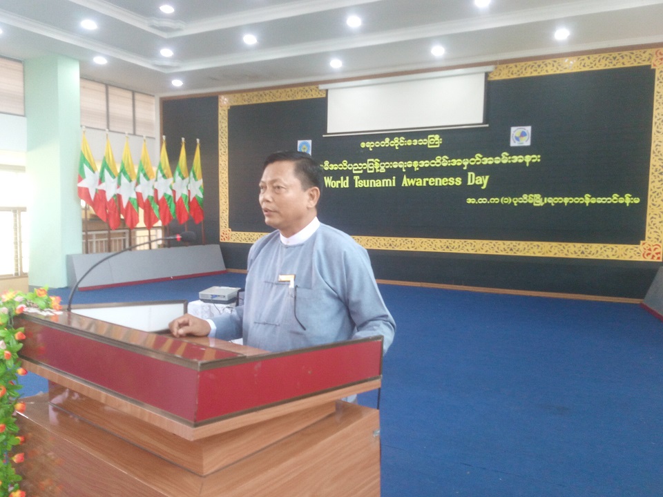 ၂၀၁၇ ခုနှစ်၊ နို၀င်ဘာလ (၅) ရက်နေ့ (၁၃း၀၀) နာရီအချိန်မှ (၁၄း၃၀) နာရီအချိန်အထိ ဧရာ၀တီတိုင်းဒေသကြီး၊ ပုသိမ်မြို့၊ အမှတ်(၁)အခြေခံပညာအထက်တန်းကျောင်း၊ ရတနာတန်ဆောင်ခန်းမ၌ ဧရာ၀တီတိုင်းဒေသကြီး၏ ပထမအကြိမ်အဖြစ် ကမ္ဘာ့ဆူနာမီအသိပညာပြန့်ပွားရေးနေ့ အထိမ်းအမှှတ်အခမ်းအနား ကျင်းပပြုလုပ်ခဲ့ရာ ဧရာ၀တီတိုင်းဒေသကြီးအစိုးရအဖွဲ့ လူမှုရေးဝန်ကြီး ဒေါက်တာလှမြတ်သွေးမှ အဖွင့်အမှာစကားပြောကြား၍ ဧရာ၀တီတိုင်းဒေသကြီးဦးစီးမှူး ဦးသန်းစိုး (ညွှန်ကြားရေးမှူး) မှ သဘာ၀ဘေးအန္တရာယ်စီမံခန့်ခွဲမှုအကြောင်း ရှင်းလင်းတင်ပြခြင်း၊ မြန်မာနိုင်ငံငလျင်ကော်မတီ အတွင်းရေးမှူး ဒေါက်တာယဉ်မျိုးမင်းထွေးမှ ဆူနာမီအကြောင်း သိကောင်းစရာများအား ဟောပြောပို့ချခြင်းများဆောင်ရွက်ခဲ့ပါသည်။