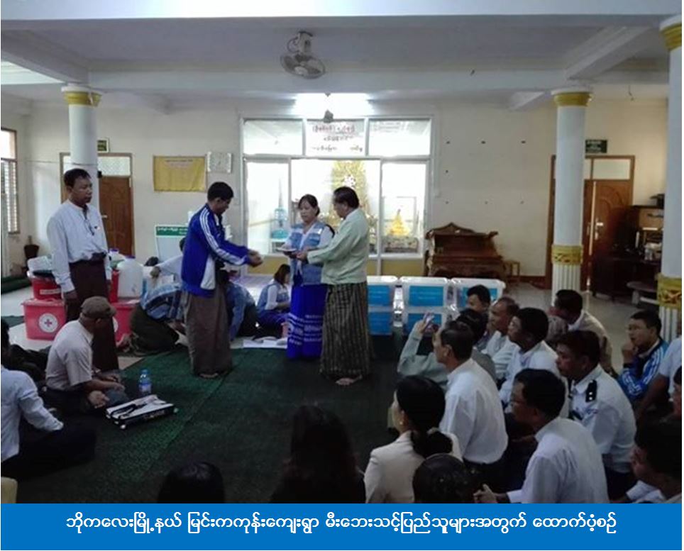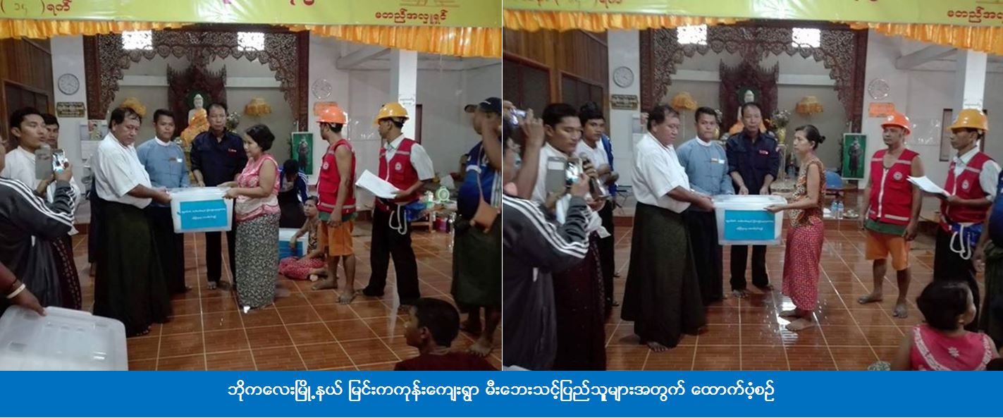 (၆-၁၁-၂၀၁၇) ရက်နေ့တွင် ဘိုကလေးမြို့နယ် မြင်းကကုန်းကျေးရွာ၌ မီးဘေးမှုဖြစ်ပွားခဲ့ရာ ဘေးသင့်ခဲ့သည့် အိ်မ်ခြေ (၁၇) စု၊ အိမ်ထောင်စု (၁၇) စုမှ လူဦးရေ (၅၆) ဦးအတွက် ကယ်ဆယ်ရေးပစ္စည်း ၁၀ မျိုး ၁၃ အိမ်ထောင်စုစာ၊ ဆန်ဖိုးငွေ (၁၁၇၆၀၀) ကျပ်၊ အိမ်ဆောက်ပစ္စည်းဖိုးငွေ (၁၇) သိန်း၊ ဒဏ်ရာရသူတစ်ဦးအတွက် ၅ သောင်းကျပ်တို့ကို ဖျာပုံခရိုင်ဦးစီးမှူးရုံး (ကဆရ) မှ တာဝန်ရှိသူများသည် (၆/၇-၁၁-၂၀၁၇) ရက်နေ့များတွင် သွားရောက်ထောက်ပ့ံခဲ့ကြောင်း သိရှိရပါသည်။