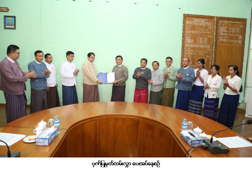 ရခိုင်ပြည်နယ်အတွင်း လူသားချင်းစာနာမှုအကူအညီအထောက်အပံ့ပေးရေး၊ ပြန်လည်နေရာချထား ရေး၊ ဖွံ့ဖြိုးရေးစီမံကိန်း (UEHRD) ၏ လုပ်ငန်းများဆောင်ရွက်ရန်အတွက် မြန်မာနိုင်ငံရုပ်ရှင်အစည်းအရုံးမှ လှူဒါန်းငွေကျပ် သိန်း (၁၀၀) ကို ပြန်ကြားရေးဝန်ကြီးဌာန၊ ပြည်ထောင်စုဝန်ကြီး ဒေါက်တာဖေမြင့်က ယနေ့ နက်ပိုင်းတွင် လူမှုဝန်ထမ်း၊ ကယ်ဆယ်ရေးနှင့်ပြန်လည်နေရာချထားရေးဝန်ကြီးဌာနသို့ လာရောက်လှူဒါန်းရာ UEHRD ဒုတိယဥက္ကဌ၊ ပြည်ထောင်စုဝန်ကြီး ဒေါက်တာဝင်းမြတ်အေးက လက်ခံရယူပြီး ဂုဏ်ပြုမှတ်တမ်းလွှာ ပြန်လည်ပေးအပ်ခဲ့ပါသည်။