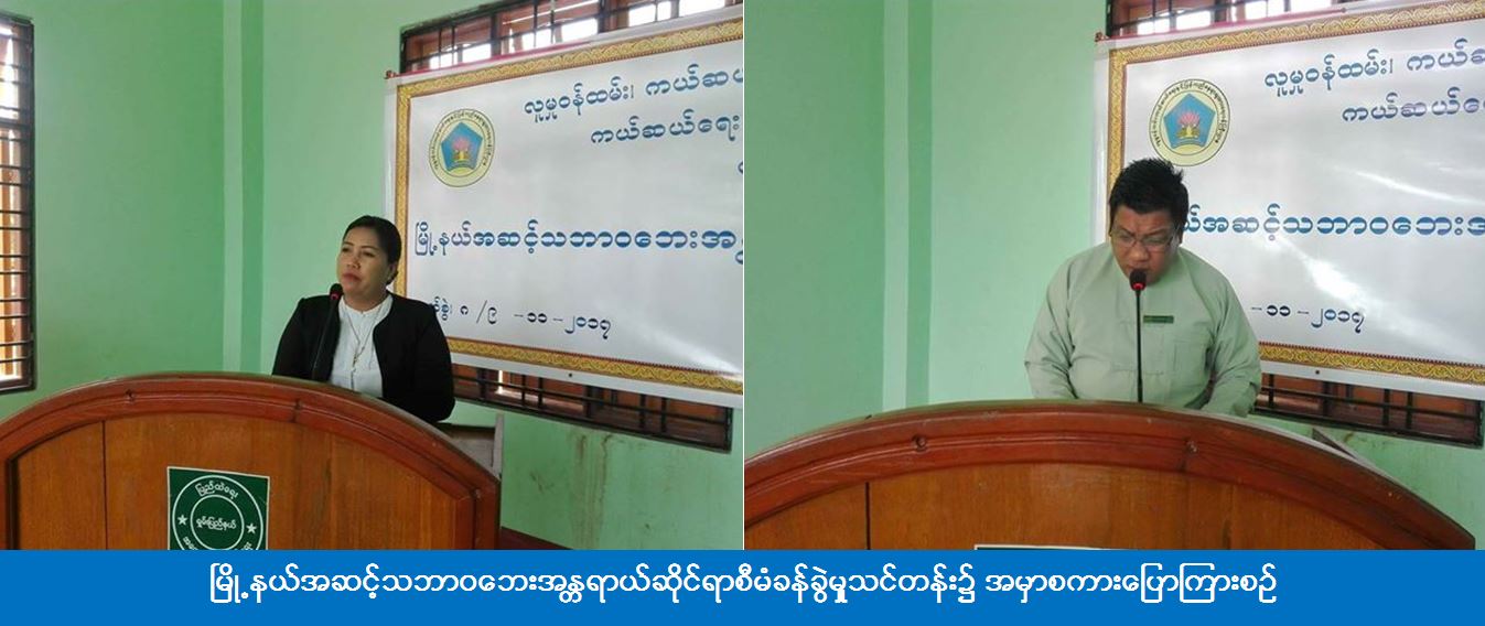 ကျိုင်းတုံခရိုင်ဦးစီးမှူးရုံး (ကဆရ)မှ တာဝန်ရှိသူများသည် မိုင်းပျဉ်းမြို့နယ်၊ မီးသတ်ဦးစီးဌာန၌ မြို့နယ်အဆင့်သဘာဝဘေးအန္တရာယ်ဆိုင်ရာစီမံခန့်ခွဲမှုသင်တန်းအား (၈/၉-၁၁-၂၀၁၇) ရက်နေ့များတွင် သင်တန်းသား (၅၀) ဦးဖြင့်ဖွင့်လှစ်ခဲ့ကြောင်း သိရှိရပါသည်။