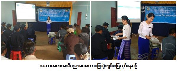 ကယ်ဆယ်ရေးနှင့်ပြန်လည်နေရာချထားရေးဦးစီးဌာန၊ ရှမ်းပြည်နယ်ဦးစီးမှူးရုံးမှ တာဝန်ရှိသူများသည် (၁၁-၁၁-၂၀၁၇) ရက်နေ့၊ နံနက်ပိုင်းတွင် ဟိန်ဓမ္မရပ်ကွက၊် ဖယ်ခုံမြို့နယ်၌ လည်းကောင်း၊ နေ့လည်ပိုင်းတွင် ကသဲကျေးရွာ၊ ဖယ်ခုံမြို့နယ်၌လည်းကောင်း သဘာဝဘေးအသိပညာပေး ဟောပြောဆွေးနွေးခြင်း၊ အသိပညာပေးလက်ကမ်းစာစောင်များ ဖြန့်ဝေပေးခြင်းများကို ဆောင်ရွက်ခဲ့ရာ ပြည်သူလူထု (၅၀) ဦးစီခန့် တက်ရောက်ခဲ့ကြောင်း သတင်းရရှိပါသည်။
