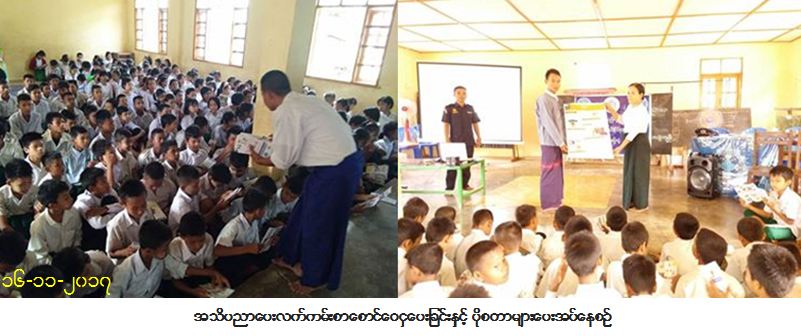 ကယ်ဆယ်ရေးနှင့်ပြန်လည်နေရာချထားရေးဦးစီးဌာန၊ ကော့ကရိတ်ခရိုင်ဦးစီးမှူးရုံးမှ တာဝန်ရှိသူများသည် (၁၆-၁၁-၂၀၁၇) ရက်နေ့ နံနက် (၀၉:၃၀)နာရီမှ (၁၂:၀၀) နာရီအချိန်ထိ ကရင်ပြည်နယ်၊ ကော့ကရိတ်ခရိုင်၊ ကော့ကရိတ်မြို့နယ်၊ ကျုံဒိုးမြို့ အထက (၁) မှ ဆရာ/ဆရာမ (၆) ဦး၊ ကျောင်းသား/သူ (၃၁၉) ဦး၊ စုစုပေါင်း (၃၂၅)ဦးအားလည်းကောင်း၊ (၁၃:၀၀) နာရီမှ (၁၅:၀၀) နာရီအချိန်တွင် အလက (ခွဲ) ကျောင်းမှ ဆရာ/ ဆရာမများနှင့် ကျောင်းသား/သူ စုစုပေါင်း (၂၂၂) ဦးအားလည်းကောင်း သဘာဝဘေးအသိပညာပေး ဟောပြောခြင်း၊ အသိပညာပေးလက်ကမ်းစာစောင်များ ဝေငှပေးခြင်းနှင့် ပိုစတာပေးအပ်ခြင်းများကို ဆောင်ရွက်ခဲ့ပါကြောင်း သတင်းရရှိပါသည်။
