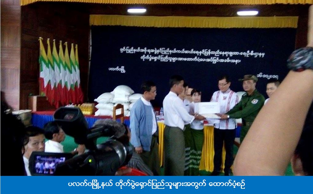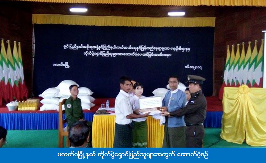 လူမှုဝန်ထမ်း၊ ကယ်ဆယ်ရေးနှင့် ပြန်လည်နေရာချထားရေးဝန်ကြီးဌာန၊ ကယ်ဆယ်ရေးနှင့် ပြန်လည်နေရာချထားရေးဦးစီးဌာန၊ ချင်းပြည်နယ်ဦးစီးမှူးရုံးမှ ပြည်နယ်ဦးစီးမှူး ဦးမြင့်အောင်သည် (၁၆-၁၁-၂၀၁၇) ရက်နေ့ (၁၂း၃၀) နာရီအချိန်တွင် ပလက်ဝမြို့ အထွေထွေအုပ်ချုပ်ရေးဦးစီးဌာန၊ ကီမိုခန်းမ၌ ပြည်နယ်စည်ပင်သာယာရေး၊ လျှပ်စစ်နှင့် စက်မှုလကိမှုဝန်ကြီး ဆလိုင်းအိုင်ဇက်ခင်နှင့်အတူ ပလက်ဝမြို့နယ် တိုက်ပွဲရှောင် အိမ်ထောင်စု (၆၇) စု၊ လူဦးရေ (၃၃၄) ဦးအတွက် ဆန်ရိက္ခာ တစ်လစာ (၁၀၄) အိတ်နှင့် (၉)ပြည်၊ စားဆီ (၆၇) ပိဿာ၊ ဆား (၆၇) ပိဿာ၊ ပဲ (၆၇) ပိဿာတို့အား ထောက်ပ့ံပေးအပ်ခဲ့ကြောင်း သိရှိရပါသည်။