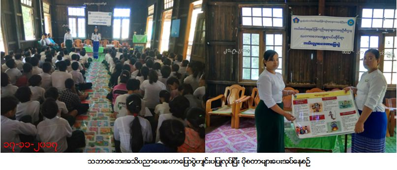 ကယ်ဆယ်ရေးနှင့် ပြန်လည်နေရာချထားရေးဦးစီးဌာန၊ မြောင်းမြခရိုင်ဦးစီးမှူးရုံးမှ တာဝန်ရှိသူများသည် (၁၇-၁၁-၂၀၁၇)ရက်နေ့ (၁၀:၀၀) နာရီအချိန်မှ (၁၁:၃၀)အချိန်ထိ မြောင်းမြမြို့၊ အထက (၂) ရေတွင်း ရေကန် ကျောင်းမှ ကျောင်းသား/သူ (၃၅၀) ဦးအား သဘာဝဘေးအသိပညာပေးဟောပေးဟောပြောပွဲ ကျင်းပပြုလုပ် ခဲ့ပြီး သဘာဝဘေးနှင့်ပတ်သက်သည့် ဆောင်ရန်/ရှောင်ရန်များ ဟောပြောခြင်း၊ အသိပညာပေးလက်ကမ်း စာစောင်များဖြန့်ဝေပေးခြင်း၊ ဘေး(၈)မျိုးပါ ပိုစတာပေးအပ်ခြင်းနှင့် DAN Mobile Application ထည့်သွင်း ပေးခြင်းများကို ဆောင်ရွက်ခဲ့ပါကြောင်း သတင်းရရှိပါသည်။