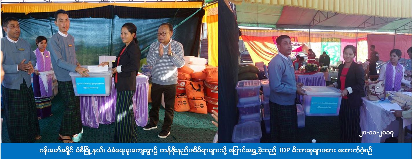 ကချင်ပြည်နယ်ဦးစီးမှူးရုံး (ကဆရ) မှ ပြည်နယ်ဦးစီးမှူးနှင့် ဗန်းမော်ခရိုင်ဦးစီးမှူးရုံး (ကဆရ) မှ တာဝန်ရှိသူများသည် (၁၉-၁၁-၂၀၁၇) ရက်နေ့တွင် ကချင်ပြည်နယ်အစိုးရအဖွဲ့ လူမှုရေးဝန်ကြီး၏ ဗန်းမော်ခရိုင် မံစီမြို့နယ်၊ မံခံရေးခူးကျေးရွာ၌ IDP မိသားစုများအား တန်ဖိုးနည်းအိမ်ရာများသို့ ပြောင်းရွှေ့နိုင်ရေးထောက်ပံ့မှုခရီးစဉ်အတွင်း ပြောင်းရွှေ့အိမ်ထောင်စု (၁၇) စုအတွက် ကယ်ဆယ်ရေးပစ္စည်း (၉) မျိူးစီနှင့် လူဦးရေ (၈၄) ဦးအတွက်(၇)ရက်စာဆန်ဘိုးငွေ (၁၇၆၄၀၀) ကျပ်တိတိကို သွားရောက်ထောက်ပံ့ခဲ့ကြောင်း သိရှိရပါသည်။
