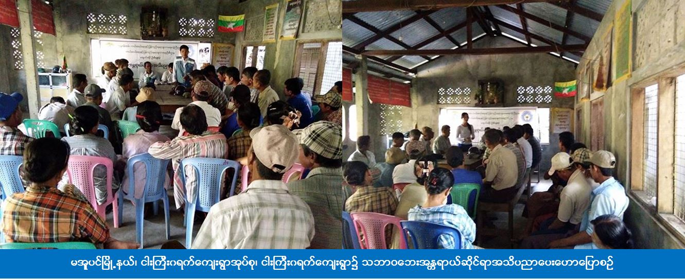 မအူပင်ခရိုင်ဦးစီးမှူးရုံး (ကဆရ) မှ တာဝန်ရှိသူများသည် (၂၃-၁၁-၂၀၁၇) ရက်နေ့တွင် သဘာဝဘေးအန္တရာယ်ဆိုင်ရာအသိပညာပေးဟောပြောပွဲအား မအူပင်မြို့နယ်၊ ငါးကြီးဂရက်ကျေးရွာအုပ်စု၊ ငါးကြီးဂရက်ကျေးရွာ ကျေးရွာအုပ်ချုပ်ရေးမှူးရုံး၌ ပြည်သူ (၁၀၀) ဦးခန့်အား ဦးစီးဌာန၏ ရည်ရွယ်ချက် လုပ်ငန်းတာဝန်များနှင့် သဘာဝဘေးအန္တရာယ်ဆိုင်ရာ စီမံခန့်ခွဲမှုလုပ်ငန်းရပ်များ၊ သဘာဝဘေးအန္တရာယ်နှင့်စပ်လျဉ်းသည့် ဆောင်ရန် ရှောင်ရန်များ ဟောပြောပို့ချခဲ့ပြီး လက်ကမ်းစာစောင်များ ဖြန့်ဝေပေးခဲ့ကြောင်း သိရှိရပါသည်။