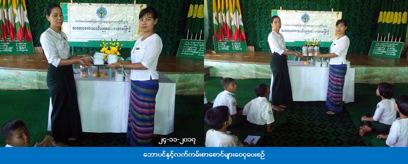 တနင်္သာရီတိုင်းဒေသကြီးဦးစီးမှူးရုံး (ကဆရ) မှ တာဝန်ရှိသူများသည် (၂၄-၁၁-၂၀၁၇) ရက်နေ့တွင် အ.ထ.က (၇) ထားဝယ်၌ ကျောင်းသား၊ ကျောင်းသူ (၃၀၀) ဦးတို့အား သဘာဝဘေးအသိပညာပေးဟောပြော၍ ဘောပင်နှင့်လက်ကမ်းစာစောင်များဝေငှပေးခဲ့ကြောင်း သိရှိရပါသည်။