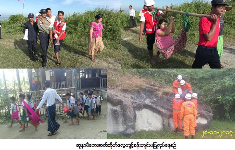 လူမှုဝန်ထမ်း၊ ကယ်ဆယ်ရေးနှင့်ပြန်လည်နေရာချထားရေးဝန်ကြီးဌာန၊ ကယ်ဆယ်ရေးနှင့့်ပြန်လည် နေရာချထားရေးဦးစီးဌာန၊ ဧရာဝတီတိုင်းဒေသကြီးဦးစီးမှူးရုံး၊ မိုးလေဝသနှင့်ဇလဗေဒညွှန်ကြားမှုဦးစီးဌာန၊ ငပုတောမြို့နယ်ကြက်ခြေနီနှင့် ဒီးဒူးကုန်းကျေးရွာ သဘာဝဘေးအန္တရာယ်ဆိုင်ရာစီမံခန့့်ခွဲမှုအဖွဲ့တို့ပူးပေါင်း၍ (၂၈-၁၁-၂၁၀၇) ရက်နေ့တွင်ဧရာဝတီတိုင်းဒေသကြီး၊ ပုသိမ်ခရိုင်၊ ငပုတောမြို့နယ်၊ ဟိုင်းကြီးကျွန်းမြို့၊ ဒီးဒူး ကုန်းကျေးရွာအုပ်စု၊ မေဒါအိုင်ကျေးရွာတွင် ဆူနာမီဘေးသဏ္ဌာန်တူဇာတ်တိုက်လေ့ကျင့်ခန်းကို ကျင်းပပြုလုပ်ခဲ့ ပါသည်။ အဆိုပါအခမ်းအနားသို့ ကယ်ဆယ်ရေးနှင့့်ပြန်လည်နေရာချထားရေးဦးစီးဌာနမှ ညွှန်ကြားရေးမှူး ဦးသန်းစိုးနှင့် တာဝန်ရှိသူများ၊ မိုးလေဝသနှင့်ဇလဗေဒညွှန်ကြားမှုဦးစီးဌာနမှ တာဝန်ရှိသူများ၊ ဟိုင်းကြီးကျွန်း မြို့ အထွေထွေအုပ်ချုပ်ရေးဦးစီးဌာန၊ မြို့နယ်အုပ်ချုပ်ရေးမှူးနှင့် ကျေးရွာသဘာဝဘေးအန္တရာယ်ဆိုင်ရာစီမံ ခန့်ခွဲမှုအဖွဲ့ဝင်များ၊ မီးသတ်တပ်ဖွဲ့၊ ကြက်ခြေနီတပ်ဖွဲ့ဝင်များ၊ ကျေးရွာဘေးအန္တရာယ်ဆိုင်ရာစီမံခန့်ခွဲမှု အဖွဲ့ဝင်များ ကျေးရွာသူကျေးရွာသားများ စုစုပေါင်းအင်အား (၃၀၀) ဦး တက်ရောက်ပါဝင်ဆောင်ရွက်ခဲ့ပါ သည်။ ၎င်းနောက် ဆူနာမီဘေးဇာတ်တိုက်လေ့ကျင့်ခန်းဆောင်ရွက်ရသည့်ရည်ရွယ်ချက်များအား တက်ရောက် လာသူများသို့ ရှင်းလင်းပြောကြားခဲ့ပြီး ထမင်းထုပ်၊ တီရှပ်နှင့် လက်ကမ်းစာစောင်များဖြန့်ဝေခဲ့ပါသည်။ ဆူနာမီဘေးသဏ္ဌာန်တူဇာတ်တိုက်လေ့ကျင့်ခန်းအား ဆူနာမီဘေးခံစားခဲ့ဖူးသည့် ကမ်းခြေဒေသများတွင် ဘေးမဖြစ်ပွားမီ ကြိုတင်ဇာတ်တိုက်လေ့ကျင့်ခြင်းဖြင့် ဘေးအန္တရာယ်ကျရောက်လာပါက ရင်ဆိုင်တုံ့ပြန်ရန် အသင့်ဖြစ်မည်ဖြစ်ပြီး ပြည်သူများ၏ အသက်စည်းစိမ်အိုးအိမ်များထိခိုက်ဆုံးရှုံးမှုများအား လျော့နည်းသက်သာ စေမည်ဖြစ်ပါသည်။