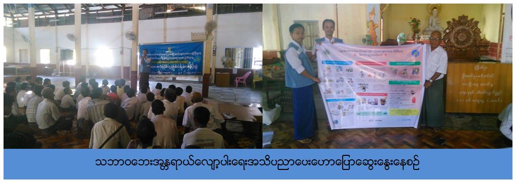 ကယ်ဆယ်ရေးနှင့် ပြန်လည်နေရာချထားရေးဦးစီးဌာန၊ ပြည်ခရိုင်ဦးစီးမှူးရုံးမှတာဝန်ရှိသူများသည် (၂၉-၁၁-၂၀၁၇)ရက်နေ့တွင် ပြည်ခရိုင်၊ ပေါင်းတည်မြို့နယ်၊ကြို့ပင်ကျေးရွာအုပ်စု၊ဘိုကုန်းကျေးရွာတွင် သဘာဝဘေး အန္တရာယ်လျော့ပါးရေး အသိပညာပေးဟောပြောပွဲကျင်းပပြုလုပ်ခဲ့ပြီး သဘာဝဘေးအန္တရာယ်နှင့်ပက်သက်သည့် ကြိုတင်ပြင်ဆင်မှုများ၊ ဆောင်ရန်/ရှောင်ရန်များအား ဟောပြောခြင်းနှင့် လက်ကမ်းစာစောင်များဖြန့်ဝေပေးခဲ့ပါသည်။ အဆိုပါဟောပြောပွဲသို့ ကျေးရွာသူ/သား၊ ကျောင်းသား/သူများ စုစုပေါင်း (၁၀၀)ဦးခန့်တက်ရောက်ခဲ့ကြောင်း သတင်းရရှိပါသည်။