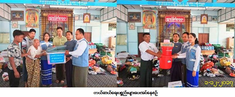 ကယ်ဆယ်ရေးနှင့် ပြန်လည်နေရာချထားရေးဦးစီးဌာန၊မန္တလေးတိုင်းဒေသကြီးဦးစီးမှူးရုံးမှ တာဝန် ရှိသူများသည် ချမ်းမြသာစည်မြို့နယ်၌ (၃၀-၁၁-၂၀၁၇) ရက်နေ့တွင်ဖြစ်ပွားခဲ့သော မီးဘေးကြောင့် ဘေးသင့်ခဲ့ သော ပျက်စီးနေအိမ် (၇) လုံးအတွက် အိမ်ဆောက်ပစ္စည်းဖိုးငွေ (၉၀၀,၀၀၀) ကျပ်၊ လူဦးရေ (၄၇) ဦးအတွက် ဆန်ရိက္ခာဖိုးငွေ (၉၈,၇၀၀) ကျပ်၊ ကယ်ဆယ်ရေးပစ္စည်း (၁၆) မျိုးပါ (၁၄) အိမ်ထောင်စုစာနှင့် Hygiene Kits (၁၄) စုံတို့အား (၁-၁၂-၂၀၁၇) ရက်နေ့တွင် သွားရောက်ထောက်ပံ့ပေးအပ်ခဲ့ကြောင်း သတင်းရရှိပါသည်။
