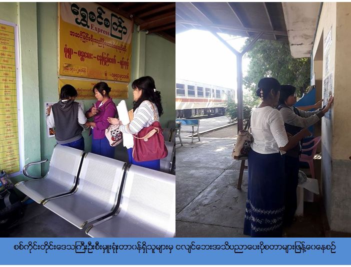 ကယ်ဆယ်ရေးနှင့် ပြန်လည်နေရာချထားရေးဦးစီးဌာန၊ စစ်ကိုင်းတိုင်းဒေသကြီးဦးစီးမှူးရုံးမှတာဝန်ရှိသူများသည် (၄-၁၂-၂၀၁၇)ရက်နေ့တွင် မုံရွာမြို့ရှိ ကားဂိတ်များ၊ အမြန်ရေယာဉ်ဂိတ်များ၊ ရထားဘူတာများသို့ ငလျင်ဘေးအသိပညာပေး ပိုစတာများကို သွားရောက်ဖြန့်ဝေပေးခဲ့ကြောင်း သတင်းရရှိပါသည်။Source: စစ်ကိုင်းတိုင်းဒေသကြီးဦးစီးမှူးရုံး (ကဆရ)