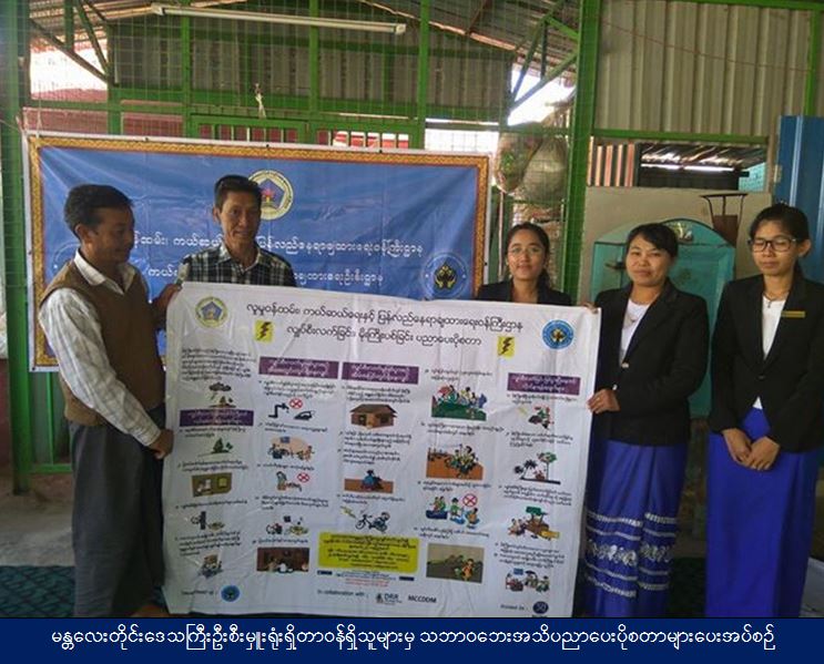ကယ်ဆယ်ရေးနှင့် ပြန်လည်နေရာချထားရေးဦးစီးဌာန၊ မန္တလေးတိုင်းဒေသကြီးဦးစီးမှူးရုံးမှ တာဝန်ရှိသူများသည် (၂၀-၁၂-၂၀၁၇)ရက်နေ့တွင် မန္တလေးတိုင်းဒေသကြီး၊ အမရပူရမြို့နယ်အတွင်းရှိ တပ်ကြီးကျေးရွာတွင် ကျေးရွာနေပြည်သူ (၁၅၀)ဦးခန့်အားလည်းကောင်း၊ ဘနောကျေးရွာတွင် ကျေးရွာနေပြည်သူ (၁၀၀) ဦးခန့်အား လည်းကောင်း ကျေးရွာအတွင်း သဘာဝဘေးအန္တရာယ်နှင့်ပတ်သက်၍ တွေ့ကြုံခံစားခဲ့ရမှုများအား မေးမြန်းဆွေးနွေးအကြံပြုခြင်း၊ သဘာဝဘေးနှင့်ပတ်သက်သည့် အသိပညာဗဟုသုတများဖြန့်ဝေခြင်း၊ ကျေးရွာအတွင်း သဘာဝဘေးကြောင့် ထိခိုက်ဆုံးရှုံးနိုင်ခြေများအား အတူတကွဆွေးနွေးခြင်း၊ ရာသီဥတုပြောင်းလဲမှုနှင့်စပ်လျဉ်း၍ ဆွေးနွေးခြင်း၊ အသိပညာပေးခြင်းများကိုဆောင်ရွက်ခြင်း၊ အသိပညာပေးလက်ကမ်းစာစောင်များ/ ပိုစတာများနှင့် အမှတ်တရပစ္စည်းများပေးအပ်ခြင်းများကို ဆောင်ရွက်ခဲ့ကြောင်း သတင်းရရှိပါသည်။