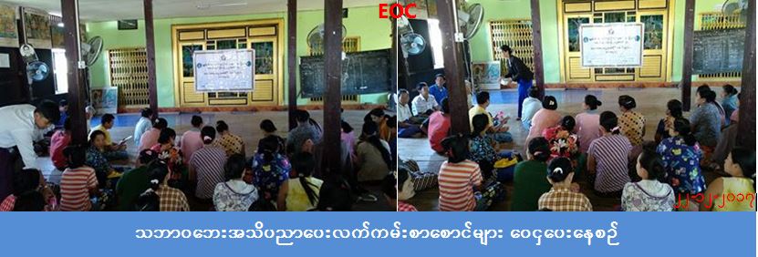 ကယ်ဆယ်ရေးနှင့်ပြန်လည်နေရာချထားရေးဦးစီးဌာန၊ မွန်ပြည်နယ်ဦးစီးမှူးရုံးမှ ဝန်ထမ်းများသည်(၂၂-၁၂-၂၀၁၇) ရက်နေ့၊(၁၀:၀၀)နာရီအချိန်တွင် ချောင်းဆုံမြို့နယ်၊ မရမ်းကျေးရွာ၌ကျေးရွာနေပြည်သူ (၂၀၀) ဦးအားလည်းကောင်း၊ (၁၁:၀၀)အချိန်တွင် ချောင်းဆုံမြို့နယ်၊ ရွာလွတ်ကျေးရွာ၌ ကျေးရွာနေပြည်သူ(၂၀၀) ဦးအားလည်းကောင်း သဘာဝဘေး အသိပညာပေးဟောပြောဆွေးနွေးခဲ့ပြီး တက်ရောက်လာသူများအား သဘာဝဘေးအသိပညာပေး လက်ကမ်းစာစောင်များ ဝေငှပေးခဲ့ကြောင်း သိရှိရပါသည်။