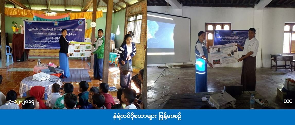 ကယ်ဆယ်ရေးနှင့် ပြန်လည်နေရာချထားရေးဦးစီးဌာန၊ မြောက်ဦးခရိုင်ဦးစီးမှူးရုံးမှ တာဝန်ရှိသူများသည် (၂၆-၁၂-၂၀၁၇) ရက်နေ့၊ နံနက် (၀၉းဝဝ~၁၁းဝဝ) နာရီအချိန်တွင် သဘာဝဘေးလျော့ပါးရေးအသိပညာပေးဟောပြောပွဲကို မင်းပြားမြို့နယ် ခေါင်းလောင်းကျေးရွာ သစ်ဘုန်းတော်ကြီးကျောင်းဓမ္မာရုံ၌ ကျောင်းသူ/သားနှင့် ကျေးရွာနေပြည်သူ (၁၄၈) ဦးတို့ကိုလည်းကောင်း၊ နေ့လယ် (၁၂းဝဝ~၁၅းဝဝ) နာရီအချိန်တွင် မင်းပြားမြို့နယ် စွန်ရဲကျေးရွာ ဘုန်းတော်ကြီးကျောင်း၌ ကျောင်းသား/သူနှင့် ကျေးရွာနေပြည်သူ (၁၂၅) ဦးတို့ကိုလည်းကောင်း သဘာဝဘေးနှင့်ပတ်သက်သည့် ဆောင်ရန်/ရှောင်ရန်များကို ဟောပြောခြင်း၊ ဘေး(၈)မျိုးပါ လက်ကမ်းစာစောင်များကို ဖြန့်ဝေခြင်း၊ နံရံကပ်ပိုစတာများကို ကျေးရွာအုပ်ချုပ်ရေးမှူးထံသို့ ပေးအပ်ခြင်း၊ သဘာဝဘေးနှင့်ပတ်သက်သည့်ဗွီဒီယိုမှတ်တမ်းများပြသခြင်းနှင့် ပေါင်မုန့်များဝေငှခြင်းတို့ကို ဆောင်ရွက်ခဲ့ကြောင်း သိရှိရပါသည်။