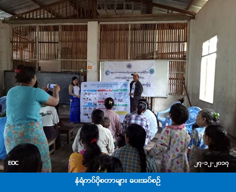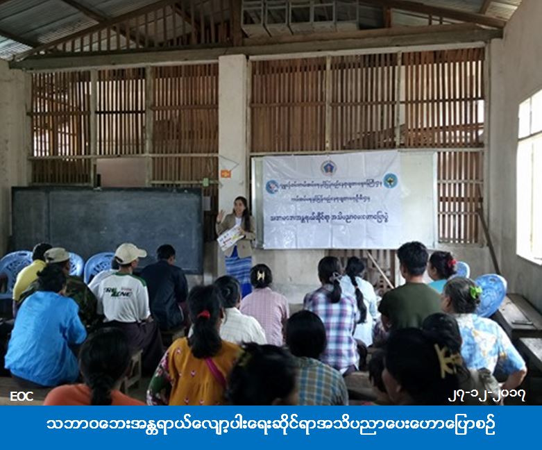 ကယ်ဆယ်ရေးနှင့် ပြန်လည်နေရာချထားရေးဦးစီးဌာန၊ ကရင်ပြည်နယ်ဦးစီးမှူးရုံးမှ တာဝန်ရှိသူများသည် (၂၇-၁၂-၂၀၁၇) ရက်နေ့တွင် ဘားအံမြို့နယ်၊ လှောကာကျေး ရွာအုပ်စု၊ ဘားပုကျေးရွာရှိ စာသင်ကျောင်း၌ ကျေးရွာနေ ပြည်သူပေါင်း (၁၅၀) ဦးအား သဘာဝဘေးအန္တရာယ်လျော့ပါးရေးဆိုင်ရာအသိပညာပေးဟောပြောပွဲ ကျင်းပ ပြုလုပ်ခဲ့ရာ တာဝန်ရှိသူများက တက်ရောက်လာသူများထံ ဗလာစာအုပ်နှင့် ဘောလ်ပင်များ ဖြန့်ဝေပေးခဲ့ပြီး မီးဘေး ရေဘေး မုန်တိုင်းဘေး မိုးကြိုးဘေး ငလျင်ဘေးဆိုင်ရာ ဆောင်ရန်/ရှောင်ရန်လက်ကမ်းစာစောင်များနှင့် ဗီနိုင်းပိုစတာများကိုလည်း ကျေးရွာအုပ်ချုပ်ရေးမှူးထံသို့ လွှဲပြောင်းပေးအပ်ခဲ့ကြောင်း သိရှိရပါသည်။