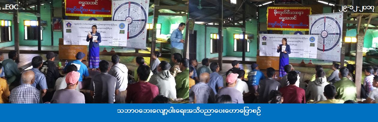 ကယ်ဆယ်ရေးနှင့် ပြန်လည်နေရာချထားရေးဦးစီးဌာန ဧရာဝတီတိုင်းဒေသြ ကီးဦးစီးမှူးရုံးမှ တာဝန်ရှိသူများသည် (၂၈-၁၂-၂၀၁၇) ရက်နေ့တွင် ရေကြည်မြို့နယ် ညောင်မော်ကျေးရွာအုပ်စု သောင်တန်းကျေးရွာ၌ သဘာဝဘေးလျော့ပါးရေးအသိပညာပေးဟောပြောပွဲအား ပြည်သူလူထု ၁၂၀ ခန့်ဖြင့် ကျင်းပပြုလုပ်ခဲ့ရာ တာဝန်ရှိသူများက ဟောပြောပွဲ၌ သဘာဝဘေးအန္တရာယ်ဆိုင်ရာ လက်ကမ်းစာစောင်များဖြန့်ဝေခြင်း၊ ဘေးဖြစ်ပွားလျှင် ဆောင်ရန် ရှောင်ရန်များ ဟောပြောခြင်းနှင့် ကျေးရွာအဆင့် သဘာဝဘေးအန္တရာယ်စီမံခန့်ခွဲမှုအဖွဲ့ ဖွဲ့စည်းပေးခြင်းများဆောင်ရွက်ခဲ့ကြောင်း သိရှိရပါသည်။
