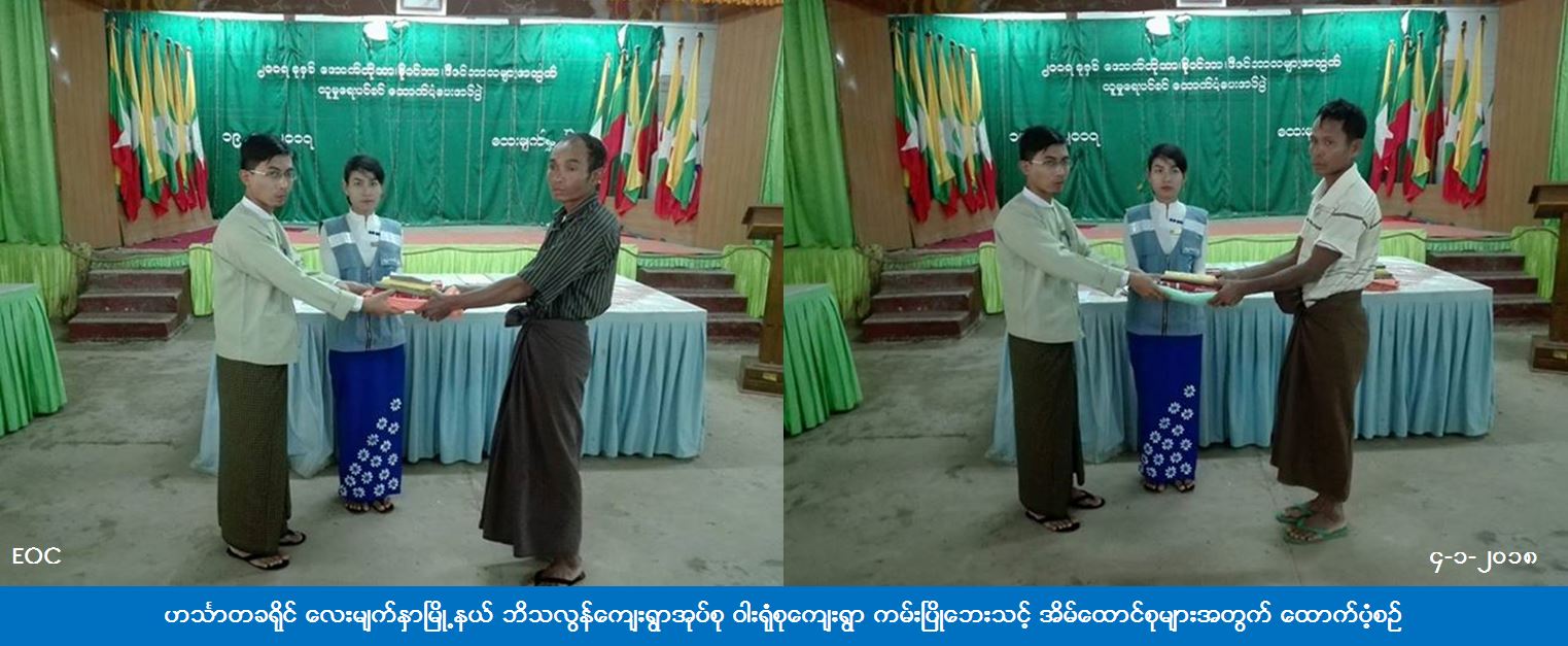 ဟင်္သာတခရိုင် လေးမျက်နှာမြို့နယ် ဘိသလွန်ကျေးရွာအုပ်စု ဝါးရုံစုကျေးရွာ၌ (၁-၁-၂၀၁၈) ရက်နေ့တွင် ဖြစ်ပွားခဲ့သော ကမ်းပြိုဘေးကြောင့် ဘေးသင့်ခဲ့သည့် အိမ်ထောင်စု (၃)စု လူဦးရေ (၁၁) ဦးတို့အတွက် ကယ်ဆယ်ရေးပစ္စည်း(၄)မျိုး – (၃) အိမ်ထောင်စာ၊ အိမ်ဆောက်ပစ္စည်းဖိုး(၃၀၀၀၀၀)ကျပ်၊ ဆန်ရိက္ခာဖိုး(၂၃၁၀၀)ကျပ် စုစုပေါင်း ကယ်ဆယ်ရေးထောက်ပ့ံရန်ပုံငွေ (၃၂၃၁၀၀) ကျပ်တိတိကို (၃-၁-၂၀၁၈) ရက်နေ့တွင် ဟင်္သာတခရိုင်ဦးစီးမှူးရုံး (ကယ်ဆယ်ရေး) မှ တာဝန်ရှိသူများသည် ဘေးသင့်ပြည်သူများ လက်ဝယ်သို့အရောက် ထောက်ပ့ံပေးအပ်ခဲ့ကြောင်း သိရှိရပါသည်။