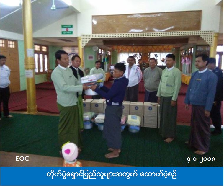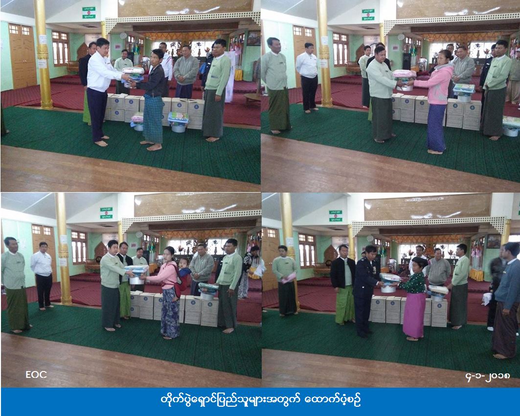 (၃-၁-၂၀၁၈) ရက်နေ့ ညနေပိုင်းတွင် ကျောက်မဲမြို့နယ်အောင်မြေသာယာဘုန်းကြီးကျောင်းသို့ နမ့်ဆန်မြို့နယ်ကြက်သေကျေးရွာမှ ထပ်မံ၍တိမ်းရှောင်လာသော တိုက်ပွဲရှောင်ပြည်သူအိမ်ထောင်စု (၃၅) စုမှ လူဦးရေ (၁၃၇) ဦးအတွက် (၄-၁-၂၀၁၈) ရက်နေ့၊ (၀၈းဝဝ) နာရီအချိန်တွင် ခရိုင်အုပ်ချုပ်ရေးမှူး၏ကြီးကြပ်မှုဖြင့် ကျောက်မဲခရိုင်ဦးစီးမှူးရုံး (ကဆရ) မှ တာဝန်ရှိသူများသည် ကယ်ဆယ်ရေးပစ္စည်း (၉)မျိုး အိမ်ထောင်စု (၃၅) စုစာအား ထောက်ပ့ံပေးခဲ့ကြောင်း သိရှိရပါသည်။