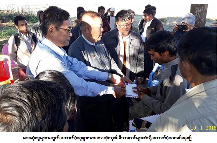 ကယ်ဆယ်ရေးနှင့် ပြန်လည်နေရာချထားရေးဦးစီးဌာန၊ ရခိုင်ပြည်နယ်ဦးစီးမှူးရုံးမှ တာဝန်ရှိသူများသည် (၉-၁-၂၀၁၈) ရက်နေ့တွင် ငှက်ကြီးကျွန်းကျေးရွာ မူလွန်ကျောင်းမှ အောင်စည်ပြင်ကျေးရွာသို့ ပြန်လာသော ကူးတိုးစက်လှေနစ်မြုပ်မှုကြောင့် စက်လှေမောင်း (၁) ဦးနှင့် ကျောင်းသူ (၂) ဦး သေဆုံးခဲ့ပါသည်။ အဆိုပါ သေဆုံး (၃) ဦးအတွက် (၁) ဦးလျှင် (၃၀၀,၀၀၀) ကျပ်နှုန်းဖြင့် (၉၀၀,၀၀၀) ကျပ်တို့အား (၁၀-၁-၂၀၁၈) ရက်နေ့တွင် ရခိုင်ပြည်နယ်အစိုးရအဖွဲ့၊ လူမှုရေးဝန်ကြီးတို့နှင့်အတူ ရခိုင်ပြည်နယ် ဦးစီးမှူးရုံး တာဝန်ရှိသူများမှ သွားရောက်ထောက်ပံ့ပေးအပ်ခဲ့ကြောင်း သတင်းရရှိပါသည်။
