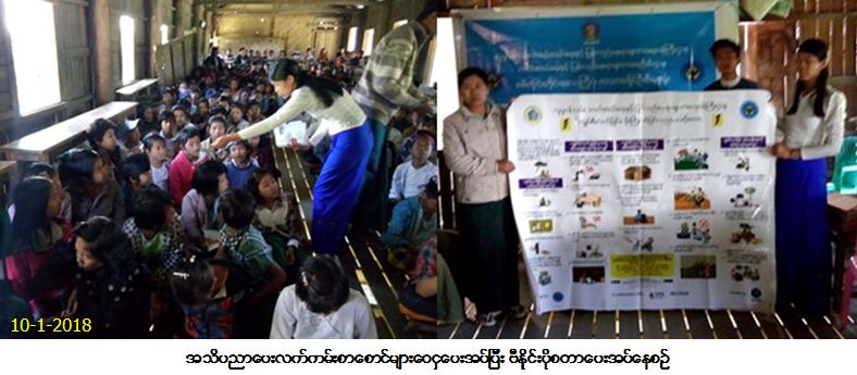 ကယ်ဆယ်ရေးနှင့် ပြန်လည်နေရာချထားရေးဦးစီးဌာန၊ ကသာခရိုင်ဦးစီးမှူးရုံးမှ တာဝန်ရှိသူများသည် (၁၀-၁-၂၀၁၈) ရက်နေ့တွင် ထီးချိုင့်မြို့နယ်၊ ရေဝကျေးရွာမှ ပြည်သူထူထု (၁၂၀) ဦးခန့်အားလည်းကောင်း၊ ဆင်ကျွန်းကျေးရွာ အ.လ.က (ခွဲ) မှ ကျောင်းသား/ကျောင်းသူ (၂၇၃) ဦးတို့အား လည်းကောင်း သဘာဝ ဘေးအသိပညာပေးဟောပြောပွဲ ကျင်းပပြုလုပ်ခဲ့ပြီး အသိပညာပေးလက်ကမ်းစာစောင်များနှင့် ဗီနိုင်းပိုစတာ ပေးအပ်ခြင်းများကို ဆောင်ရွက်ခဲ့ပါကြောင်း သတင်းရရှိပါသည်။