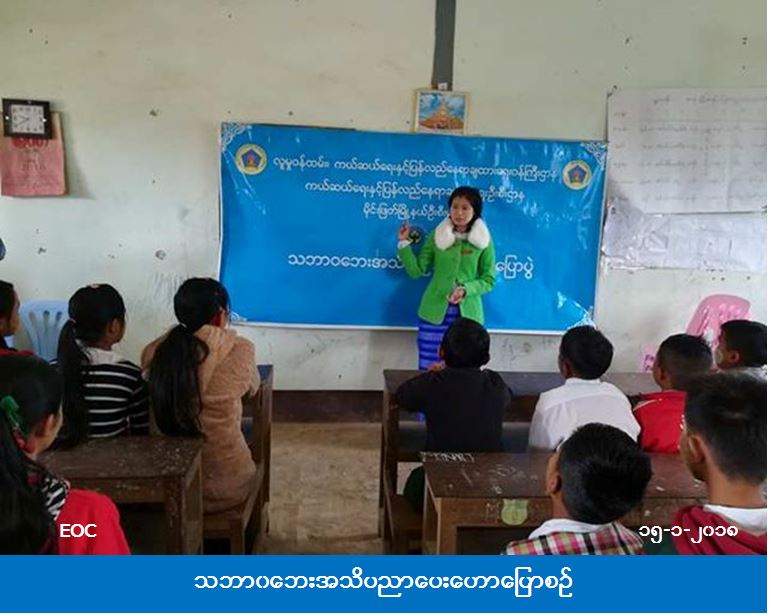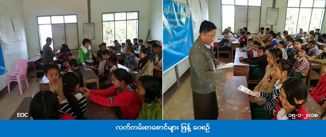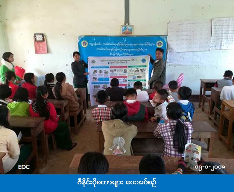 မိုင်းဖြတ်မြို့နယ်ဦးစီးမှူးရုံး (ကဆရ) မှ ဝန်ထမ်းများသည် (၁၅-၁-၂၀၁၈) ရက်နေ့ နံနက် (၀၉း၃၀) နာရီအချိန်တွင် မိုင်းဖြတ်မြို့နယ် ဝမ်လုံးကျေးရွာ အ လ က (၂၂၁) ၌ သဘာဝဘေးအသိပညာပေးဟောပြောပွဲပြုလုပ်ခဲ့ပြီး လက်ကမ်းစာစောင်များနှင့် ဗိနိုင်းများ ဖြန့်ဝေပေးခဲ့ပါသည်။ ဟောပြောပွဲသို့ ကျောင်းသား/သူ (၈၀) ဦးတတ်ရောက်ခဲ့ကြောင်း သိရှိရပါသည်။