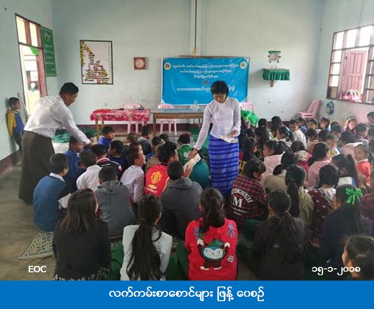 မိုင်းဖြတ်မြို့နယ်ဦးစီးမှူးရုံး (ကဆရ) မှ ဝန်ထမ်းများသည် (၁၅-၁-၂၀၁၈) ရက်နေ့ နေ့လည် (၁၁း၃၀) နာရီအချိန်တွင် မိုင်းဖြတ်မြို့နယ် ပါဆန်းကျေးရွာ အ လ က(ခွဲ) ကျောင်း၌ သဘာဝဘေးအသိပညာပေးဟောပြောပွဲ ပြုလုပ်ခဲ့ပြီး လက်ကမ်းစာစောင်များနှင့် ဗီနိုင်းပိုစတာများ ဖြန့်ဝေပေးခဲ့ပါသည်။ ဟောပြောပွဲသို့ ကျောင်းသူ/သား (၁၁၀) ဦးတတ်ရောက်ခဲ့ကြောင်း သိရှိရပါသည်။