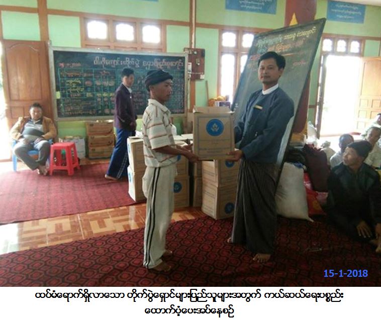 လူမှုဝန်ထမ်း၊ ကယ်ဆယ်ရေးနှင့်ပြန်လည်နေရာချထားရေးဝန်ကြီးဌာန၊ ကယ်ဆယ်ရေးနှင့် ပြန်လည်နေရာချထားရေးဦးစီးဌာန၊ ကျောက်မဲခရိုင် ဦးစီးမှူးရုံးမှ တာဝန်ရှိသူများသည် (၁၄-၁-၂၀၁၈)ရက်နေ့တွင် ကျောက်မဲမြို့နယ်၊ အောင်မြေသာယာကျောင်းတွင်ထပ်မံရောက်ရှိလာသော လူဦးရေ (၈)ဦးနှင့် ဝါဆိုကျောင်းတွင် အိမ်ထောင်စု (၁၂)စု လူဦးရေ (၃၀) ဦး မိုင်းငေါ့ဘုန်းကြီးကျောင်းတွင် အိမ်ထောင်စု (၂) စု လူဦးရေ (၁၁)ဦး၊ အိမ်အမှတ်(၈)ရပ်ကွက်တွင် အိမ်ထောင်စု(၂)စုမှ လူဦးရေ(၁၄)ဦးတို့အတွက် ကယ်ဆယ်ရေးပစ္စည်း (၉)မျိး အိမ်ထောင်စု(၁၆)စုစာနှင့် လူဦးရေစုစုပေါင်း (၆၃)ဦးအတွက် ဆန်ရိက္ခာဖိုး (၇)ရက်စာ တန်ဘိုးငွေ (၁၃၂၃၀၀/-)ကျပ်တိတိကို (၁၅-၁-၂၀၁၈)ရက်နေ့တွင် မိုင်းငေါ့ကျောင်း သို့ မော်တော်ယာဉ်ဖြင့်ပို့ဆောင်ထောက်ပံ့ပေးအပ်ခဲ့ကြောင်း သတင်းရရှိပါသည်။