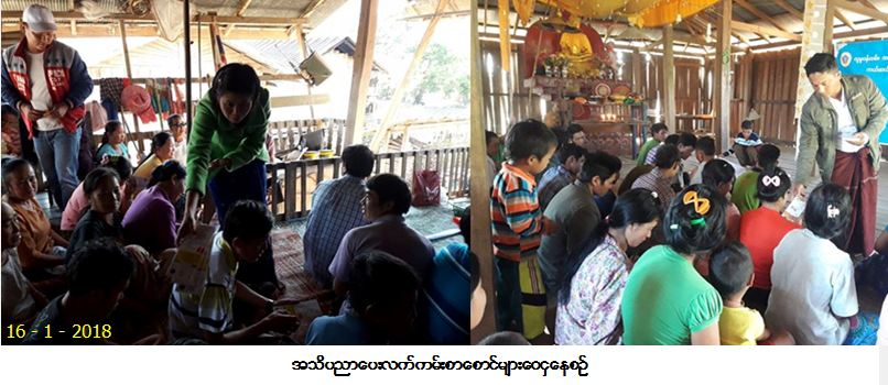 ကယ်ဆယ်ရေးနှင့် ပြန်လည်နေရာချထားရေးဦးစီးဌာန၊ မိုင်းဖြတ်ခရိုင်ဦးစီးမှူးရုံးမှ တာဝန်ရှိသူများသည် (၁၆-၁-၂၀၁၈) ရက်နေ့ နံနက် (၀၉း၀၀) နာရီအချိန်တွင် မိုင်းဖြတ်မြို့နယ်၊ လန်းဆမ်ကျေးရွာမှ လူဦးရေ (၈၀) ဦး ခန့်နှင့် နေ့လည် (၁၄း၀၀) နာရီအချိန်တွင် မိုင်းဖြတ်မြို့နယ်၊ ပါခယ်ကျေးရွာမှ လူဦးရေ (၈၅) ဦးခန့်တို့အား သဘာဝဘေးအသိပညာပေးဟောပြောပွဲကျင်းပပြုလုပ်ခဲ့ခြင်း၊ အသိပညာပေးလက်ကမ်းစာစောင်များဝေငှ ပေးခြင်းနှင့် ဗီနိုင်းပိုစတာပေးအပ်ခြင်းများကို ဆောင်ရွက်ခဲ့ပါကြောင်း သတင်းရရှိပါသည်။