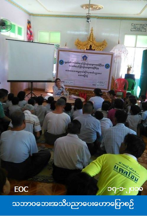 သဘာဝဘေးအသိပညာပေးဟောပြောပွဲ ကျင်းပပြုလုပ်ပြီး သဘာဝဘေးအသိပညာပေးလက်ကမ်းစာစောင်များ ဖြန့်ဝေပေးခဲ့ပါသည်။ ဟောပြောပွဲသို့ ပြည်သူ (၁၅၀) ဦး တက်ရောက်ခဲ့ကြောင်း သိရှိရပါသည်။