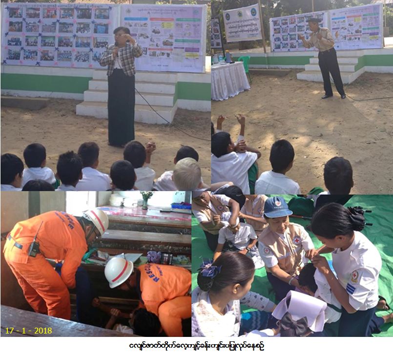 ကယ်ဆယ်ရေးနှင့် ပြန်လည်နေရာချထားရေးဦးစီးဌာန၊ နေပြည်တော်တိုင်းဦးစီးမှူးရုံးမှ တာဝန်ရှိသူများသည် လယ်ဝေးမြို့နယ်၊ အထွေထွေအုပ်ချုပ်ရေးဦးစီးဌာန၊ လယ်ဝေးမြို့နယ် အခြေခံ ပညာဦးစီးဌာန၊ နေပြည်တော် မီးသတ်ဦးစီးဌာန၊ နေပြည်တော် ပြည်သူ့ကျန်းမာရေးဦးစီးဌာန၊ လယ်ဝေးမြို့နယ် ပြန်ကြားရေးနှင့် ပြည်သူ့ ဆက်ဆံရေးဦးစီးဌာန၊ နေပြည်တော် ကြက်ခြေနီကြီးကြပ်မှု ကော်မတီတို့နှင့်ပူးပေါင်း၍ (၁၇-၁-၂၀၁၈) ရက်နေ့တွင် လယ်ဝေးမြို့နယ်၊ သပြေပင်(အ.ထ.က-၃) စာသင်ကျောင်း၌ ကျောင်းသား၊ ကျောင်းသူ (၃၀၀) ဦးဖြင့် ငလျင်ဇာတ်တိုက်လေ့ကျင့်ခန်းအား နံနက် (၁၁:၀၀)နာရီအချိန်မှ (၁၂:၀၀)နာရီအချိန်ထိ ကျင်းပ ပြုလုပ်ခဲ့ပြီး အခမ်းအနားသို့ နေပြည်တော်ကောင်စီဝင် ဦးအေးမောင်စိန်နှင့် ဌာနဆိုင်ရာဝန်ထမ်းများ စုစုပေါင်း (၁၀၀) ဦးခန့် တက်ရောက်၍ ပူးပေါင်းပါဝင်ဆောင်ရွက်ခဲ့ပါကြောင်း သတင်းရရှိပါသည်။