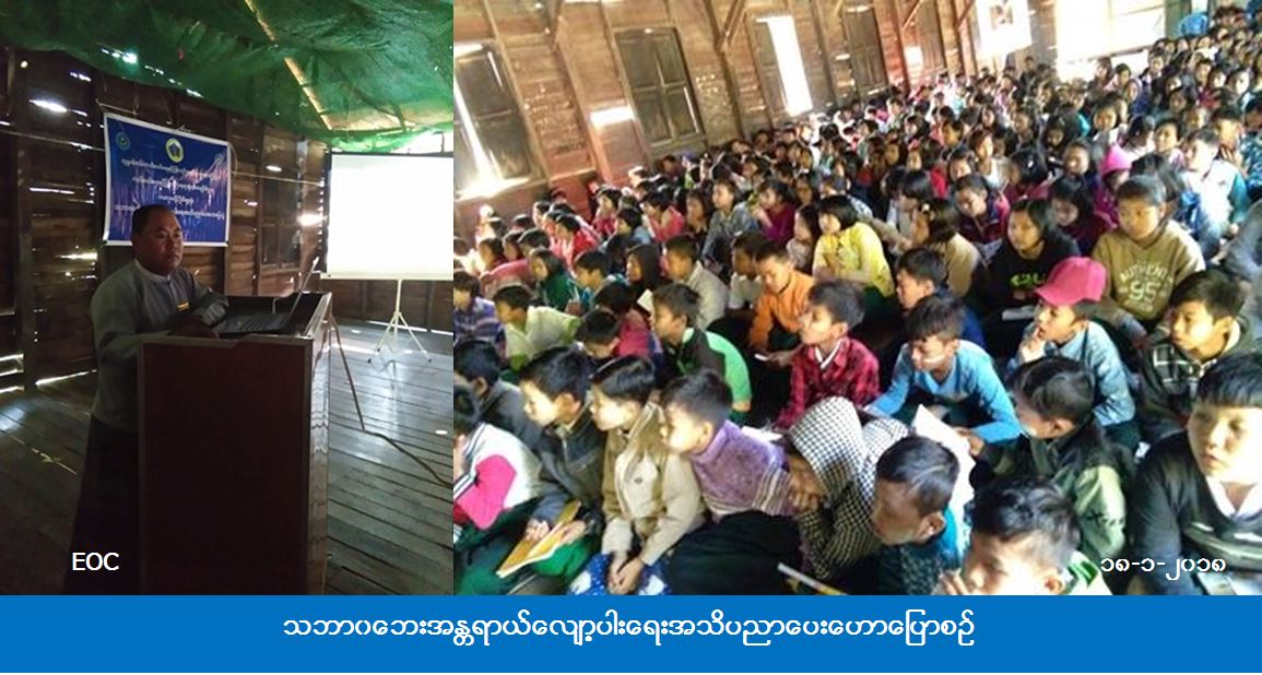 ကလေးခရိုင်ဦးစီးမှူးရုံး (ကဆရ) မှ တာဝန်ရှိသူများသည် (၁၈-၁-၂၀၁၈) ရက်နေ့၊ နံနက် (၁၀းဝဝ) မှ (၁၁း၃၀) ထိ ကလေးမြို့ အ-ထ-က(၃) စိန်မယ်ရီကျောင်း၌ ကျောင်းသား/သူ(၃၅၀) ကျော်အား သဘာဝဘေးအန္တရာယ်လျော့ပါးရေးအသိပညာပေးဟောပြောဆွေးနွေးခဲ့ပြီး လက်ကမ်းစာစောင်များဝေငှခဲ့ကြောင်း သိရှိရပါသည်။