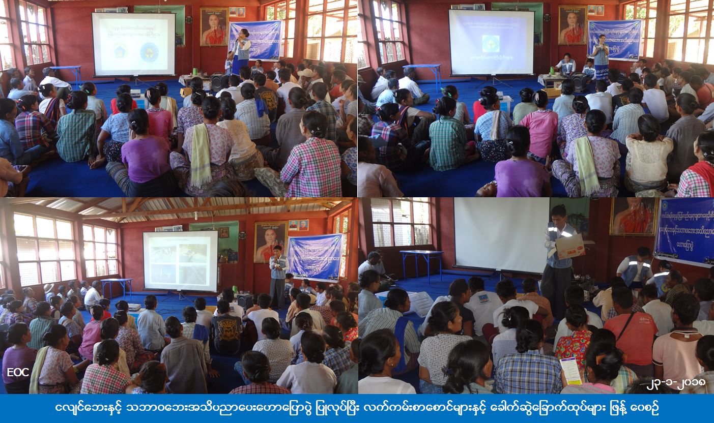ကယ်ဆယ်ရေးနှင် ့ပြန်လည်နေရာချထားရေးဦးစီးဌာန၊ မကွေးတိုင်းဒေသကြီးဦးစီးမှူးရုံးမှ တာဝန်ရှိသူများသည် (၂၂-၁-၂၀၁၈) ရက်နေ့တွင် မကွေးမြို့နယ်၊ ဂျုတ်ကုန်းကျေးရွာ၌ ငလျင်ဘေးနှင့် သဘာဝဘေးအသိပညာပေးဟောပြောပွဲပြုလုပ်ခဲ့ပြီး လက်ကမ်းစာစောင်များ၊ ခေါက်ဆွဲခြောက်များ ဝေငှခဲ့ပါသည်။ ဟောပြောပွဲသို့ ကျေးရွာသူ/ကျေးရွာသား (၁၀၀) ဦးတက်ရောက်ခဲ့ကြောင်း သိရှိရပါသည်။