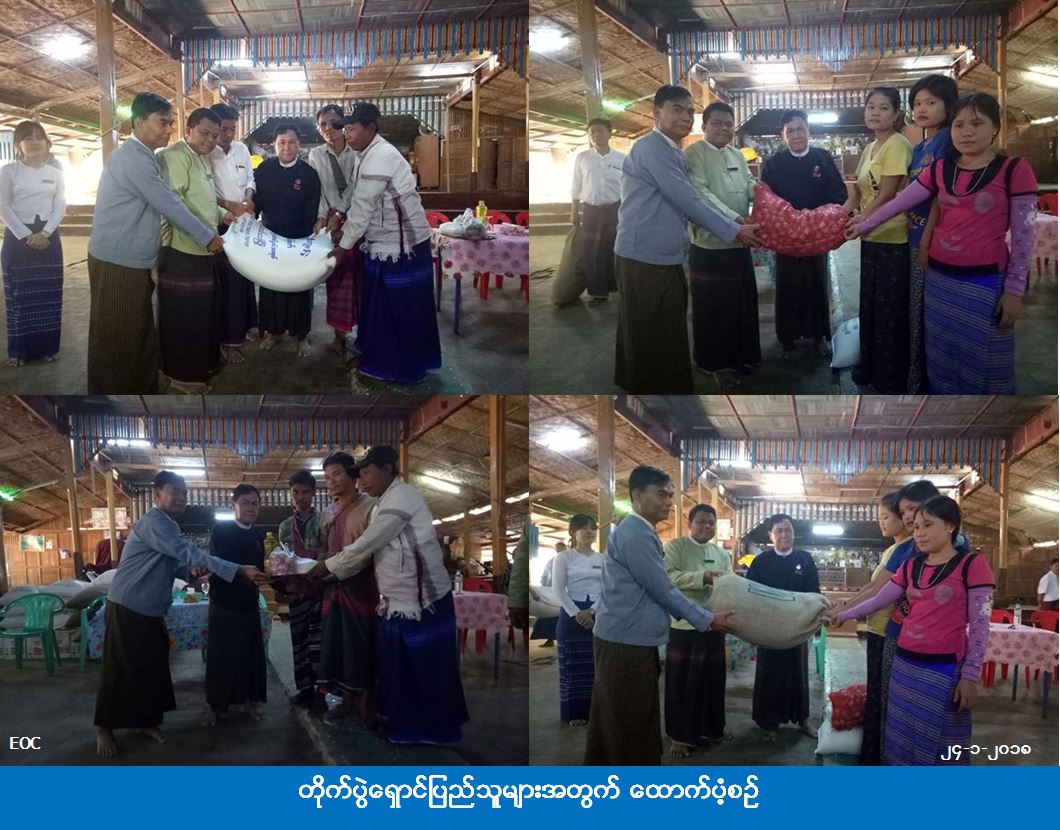(၂၃-၁-၂၀၁၈) ရက်နေ့တွင် ကရင်ပြည်နယ်ဦးစီးမှူးရုံး (ကဆရ) မှ တာဝန်ရှိသူများသည် လှိုင်းဘွဲမြို့နယ်၊ မြိုင်ကြီးငူအထူးဒေသ တိုက်ပွဲရှောင်ကယ်ဆယ်ရေးစခန်းရှိ ဘေးသင့်အိမ်ထောင်စု (၁၀၀၇) စု လူဦးရေ (၅၅၉၆) ဦးတို့အတွက် (၂၅၃၄၂၉၀၀ိ/-) တန်ဖိုးရှိ ဆန် (၆၀၀) အိတ်၊ ဆီတစ်လီတာဘူး (၁၀၀၇) ဘူး၊ ကြက်သွန်နီ (၆၀၀) ပိဿာ၊ အာလူး (၆၀၀) ပိဿာ၊ အသားတု (၆၀၀) ပိဿာ၊ ပဲဝါခြမ်း (၆၀၀) ပိဿာ၊ ငြုပ်သီးခြောက်တောင့် (၁၅၀) ပိဿာ၊ အချိုမှုန့်ပေါင်ထုပ် (၆၀) ထုပ်၊ ဆား (၂၀၁၄) ထုပ်တို့အား ကရင်ပြည်နယ်လွှတ်တော်ဥက္ကဌ ဦးစောချစ်ခင်နှင့်အတူ ပြည်နယ်ဦးစီးမှူး (ကဆရ) တို့ သွားရောက်ထောက်ပ့ံခဲ့ကြောင်း သိရှိရပါသည်။