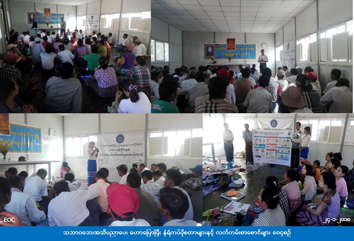 ဟင်္သာတခရိုင်ဦးစီးမှူးရုံး (ကဆရ) မှ တာဝန်ရှိသူများသည် (၂၄-၁-၂၀၁၈) ရက်နေ့တွင် ဟင်္သာတမြို့နယ်၊ လိပ်ချောင်းကျေးရွာအုပ်စု၊ လိပ်ချောင်းကျေးရွာ၌ သဘာဝဘေးအသိပညာပေးဟောပြောဆွေးနွေးပွဲ ကျင်းပခဲ့ရာ တက်ရောက်လာသော ရပ်ရွာပြည်သူ (၁၀၀) ဦးအား ငလျင်ဘေးအန္တရာယ်နှင့်ပတ်သက်၍ ဘေးမဖြစ်မီ ဘေးဖြစ်နေစဉ် ဘေးဖြစ်ပွားပြီးနောက် ဆောင်ရန်/ ရှောင်ရန်များ အသိပညာပေးဟောပြောဆွေးနွေးခဲ့ပြီး နံရံကပ်ပိုစတာများနှင့် လက်ကမ်းစာစောင်များ ဝေငှခဲ့ကြောင်း သိရှိရပါသည်။