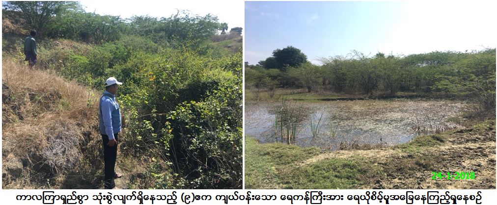 လူမှုဝန်ထမ်း၊ ကယ်ဆယ်ရေးနှင့်ပြန်လည်နေရာချ ထားရေးဝန်ကြီးဌာန၊ ကယ်ဆယ်ရေးနှင့်ပြန်လည်နေရာချ ထားရေးဦးစီးဌာန၊ မန္တလေးတိုင်းဒေသကြီးဦးစီးမှူးရုံးမှ တာဝန်ရှိသူများသည် (၂၄-၁-၂၀၁၈)ရက်နေ့တွင် နွားထိုးကြီးမြို့နယ်၊ ညောင်ပင်သာကျေးရွာအုပ်စု၊ နဘဲသာကျေးရွာ၌ ကာလကြာရှည်စွာ သုံးစွဲလျက်ရှိနေသည့် (၉)ဧက ကျယ်ဝန်းသော ရေကန်ကြီးအား ရေယိုစိမ့်မူအခြေနေကြည့်ရှုရန်အတွက် နွားထိုးကြီးမြို့နယ် အထွေထွေအုပ်ချူပ် ရေးဦးစီးဌာန၊ မြို့နယ်ဆည်မြောင်းဦးစီးဌာနမှ တာဝန်ရှိသူ များနှင့်အတူပူးပေါင်း၍ ကွင်းဆင်းဆောင်ရွက်ခဲ့ကြောင်း သတင်းရရှိပါသည်။